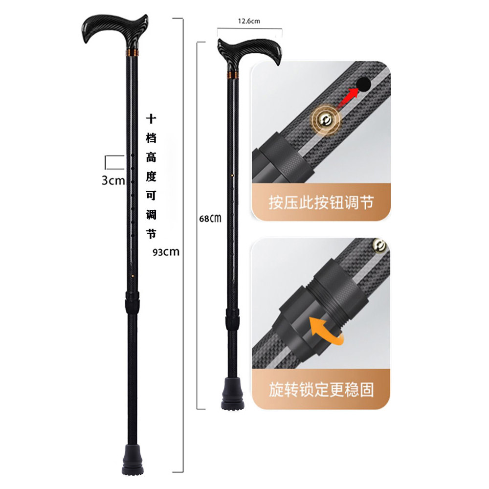 超轻伸缩拐杖登山徒步助力行走防滑摔四脚稳固碳纤维扶手杖柱棍器
