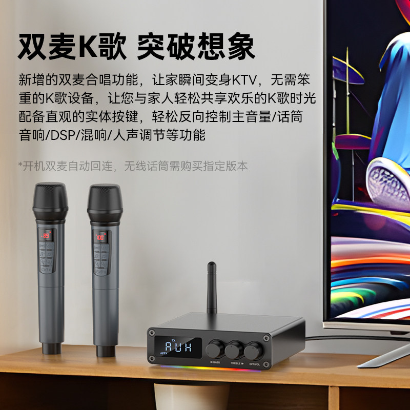 蓝牙5.2接收器电视无线话筒唱歌一体机家庭音响功放K歌前级效果器