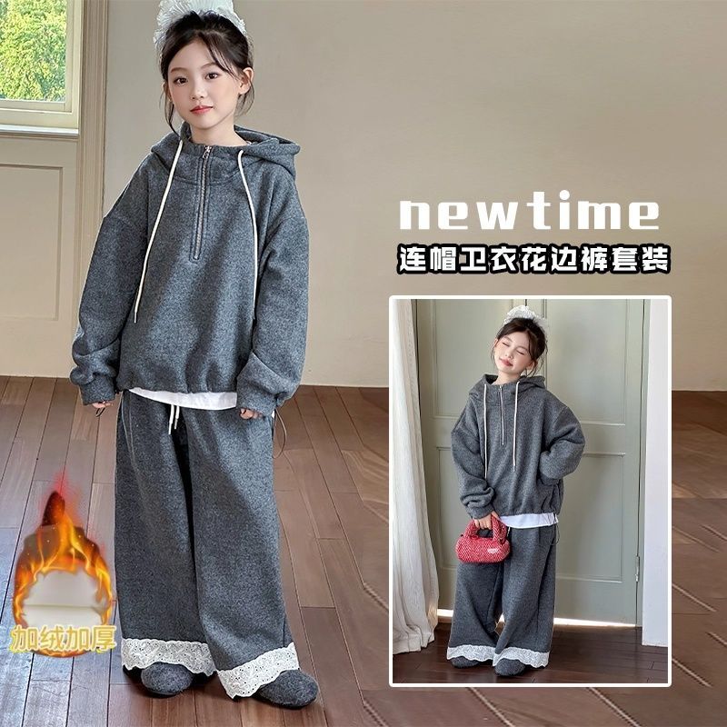 女童套装秋冬款2025新款洋气儿童冬装加绒卫衣两件大童冬季运动装