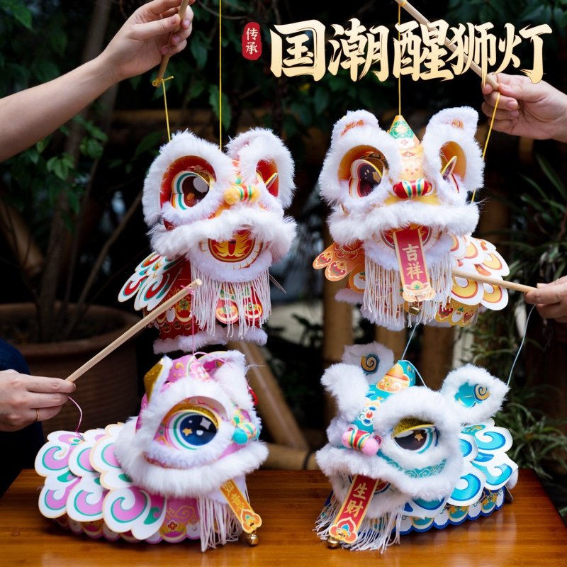 新春马年瑞宝醒狮灯笼手工DIY材料幼儿园古风花灯舞狮手提玩偶