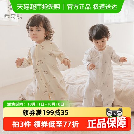 乖奇熊男女宝宝纯棉连体衣春夏季长袖空调服婴儿无骨哈衣爬服薄款