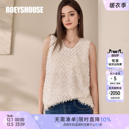 罗衣时尚流苏无袖衬衫T恤女2025夏季气质纯色圆领修身上衣11979