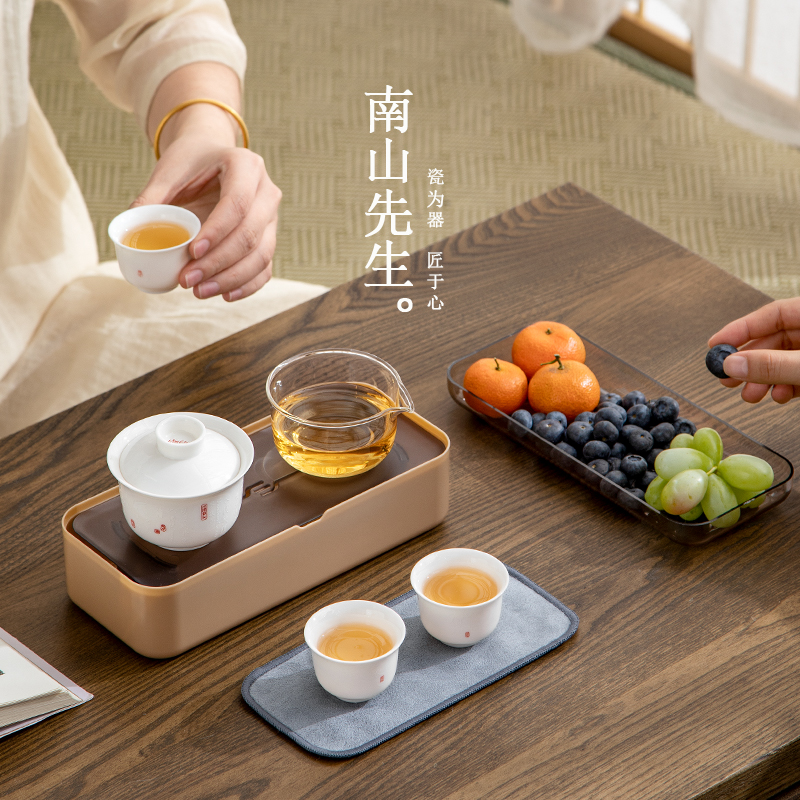 南山先生 倾城盖碗旅行茶具一壶三杯快客杯户外便携旅行茶具套装