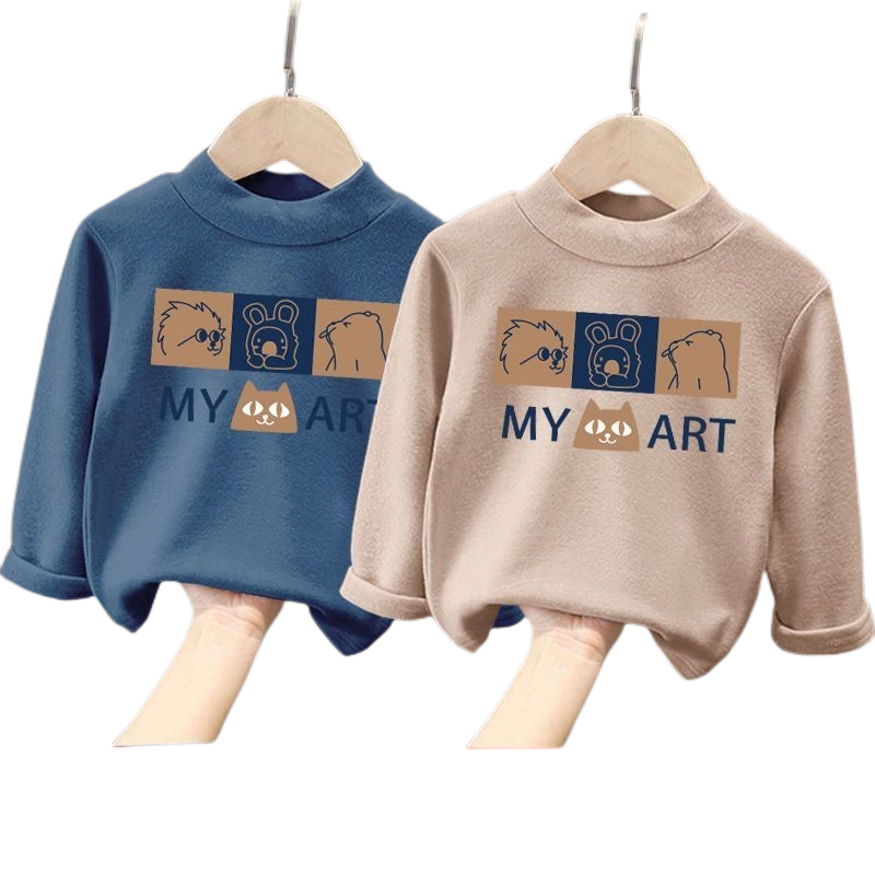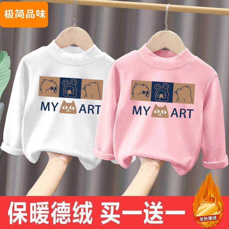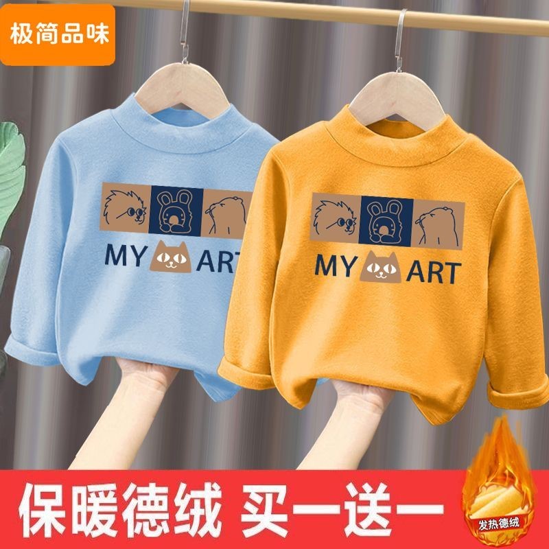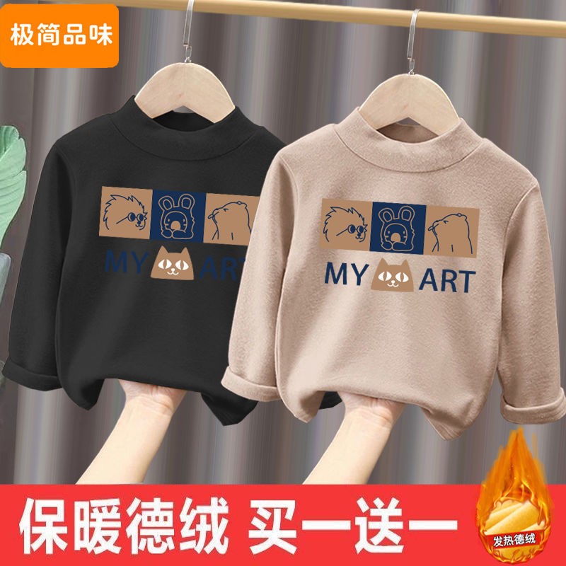 儿童德绒半高领保暖上衣秋冬装男女童长袖T恤中小童加绒打底衫潮