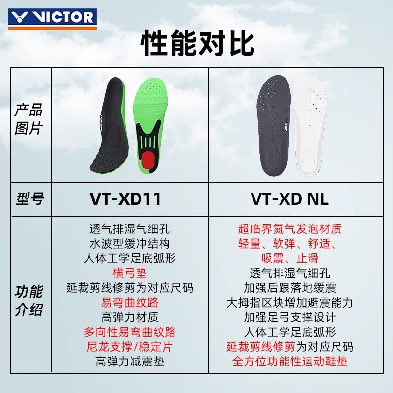 正品VICTOR/威克多胜利羽毛球鞋垫 减震高弹运动鞋垫XD11高低足弓