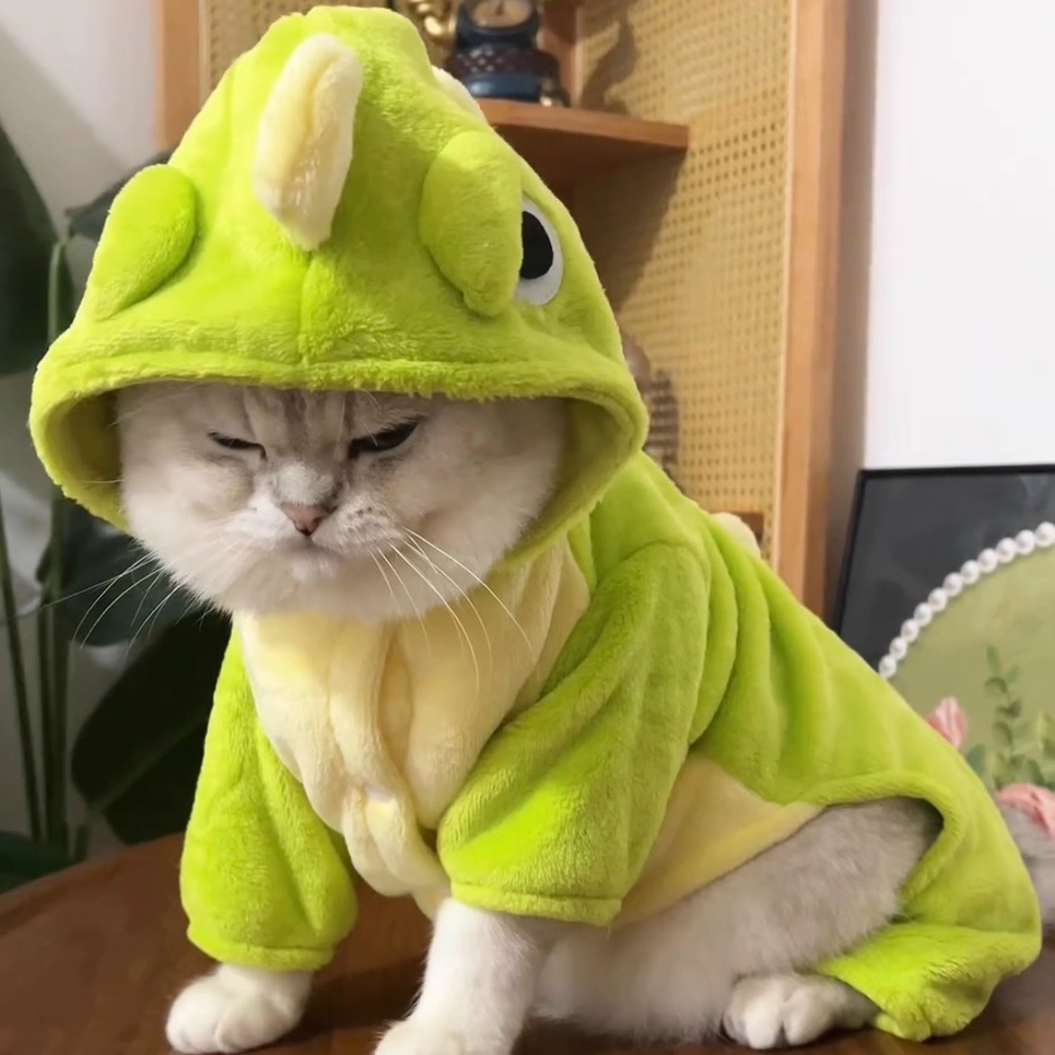 猫咪衣服秋冬恐龙变身装保暖连帽四脚衣银渐层布偶小型犬可爱服饰
