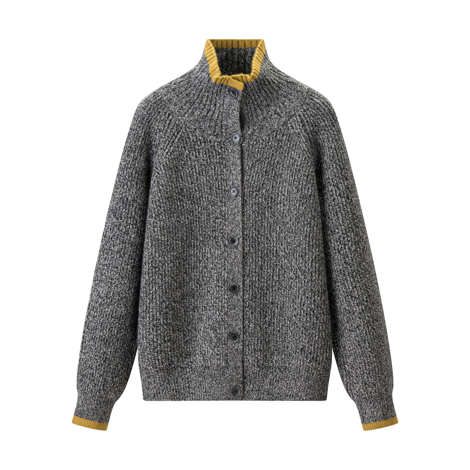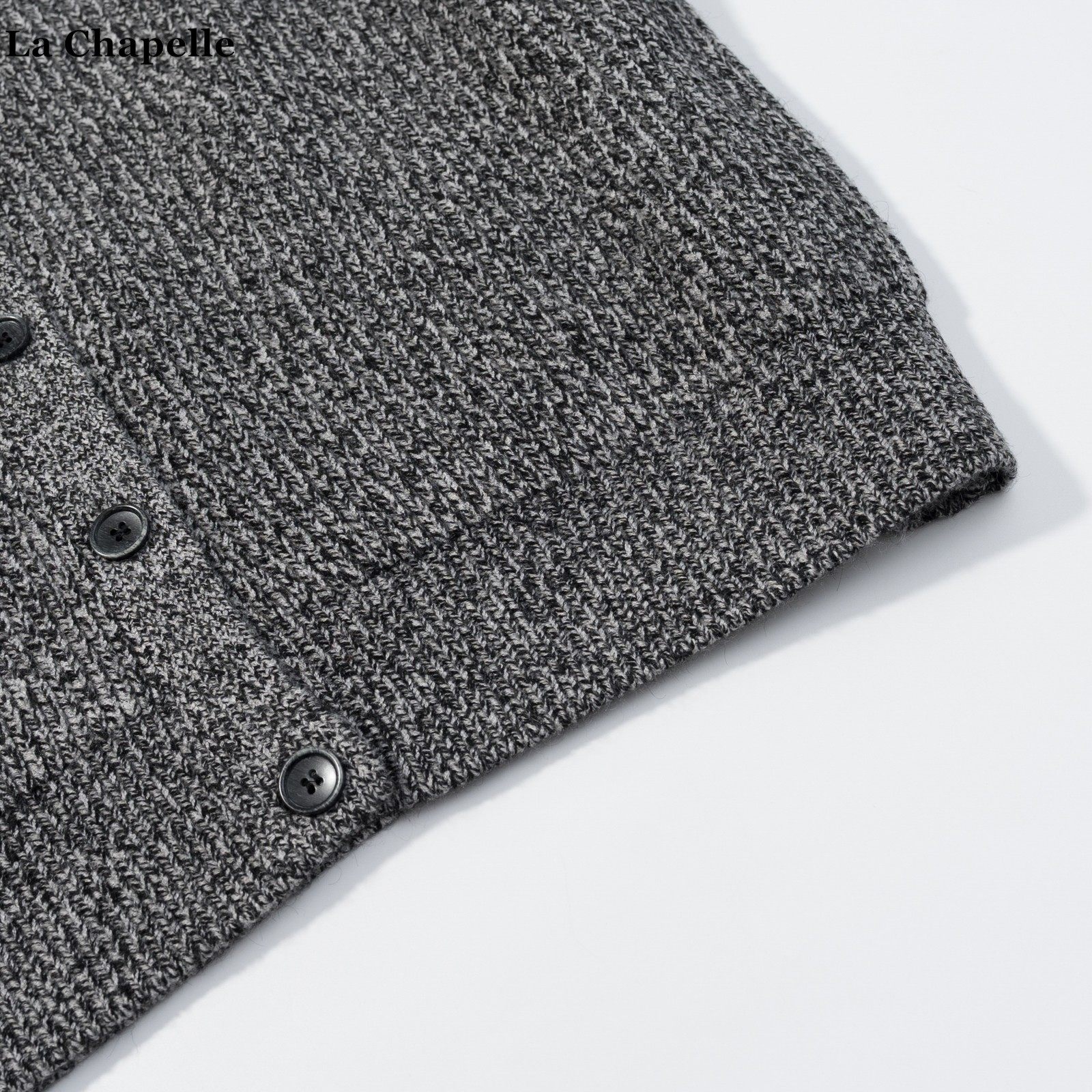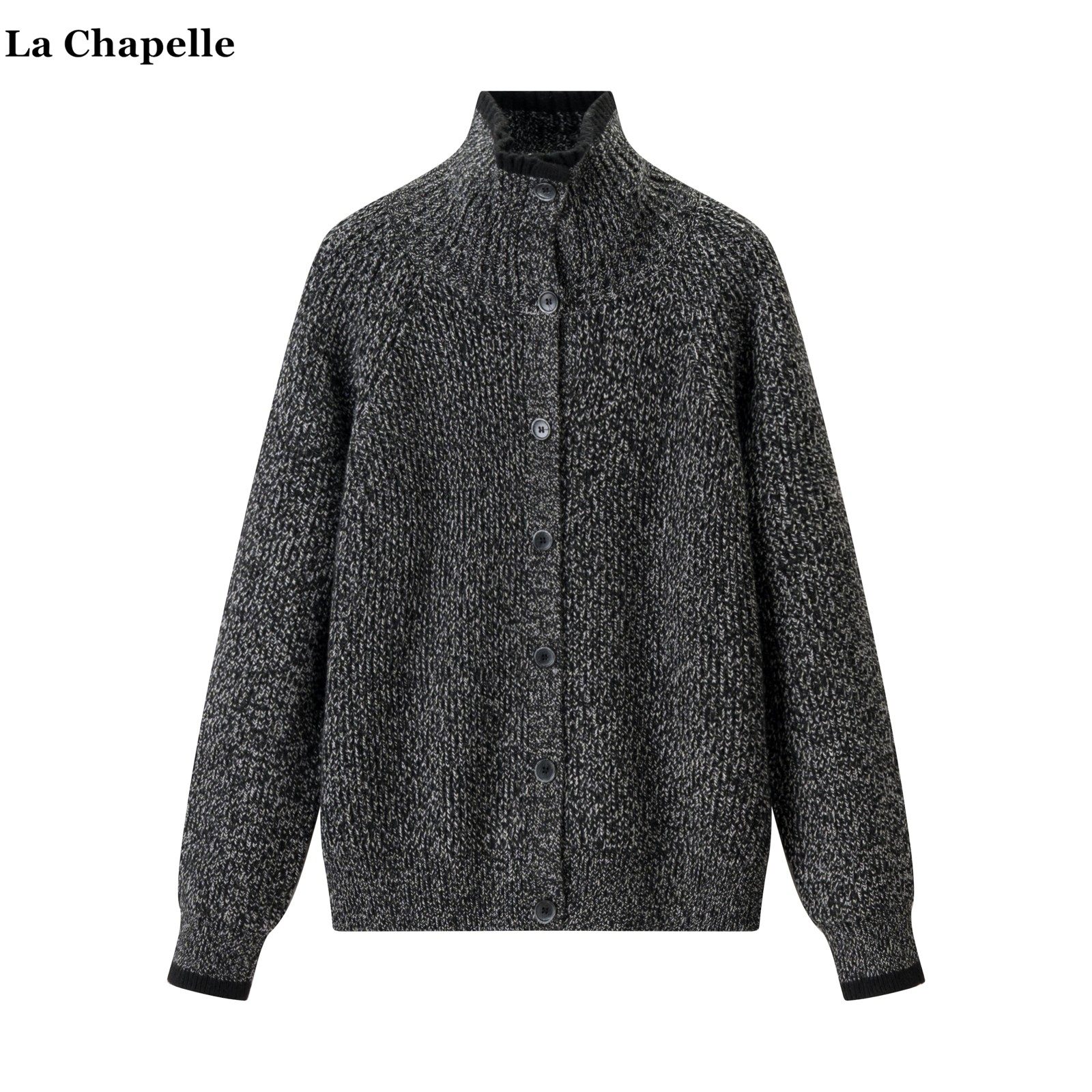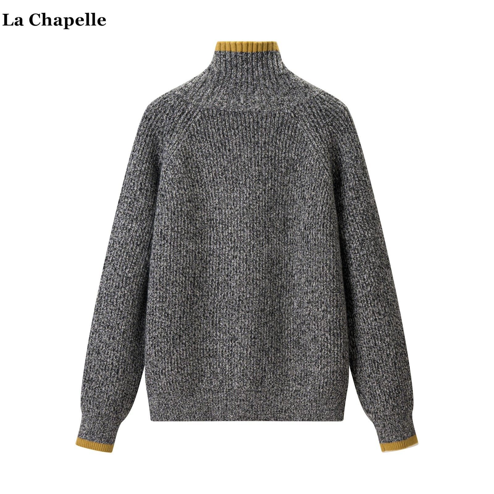 拉夏贝尔/La Chapelle撞色半高领针织衫上衣女春款灰色假俩件毛衣