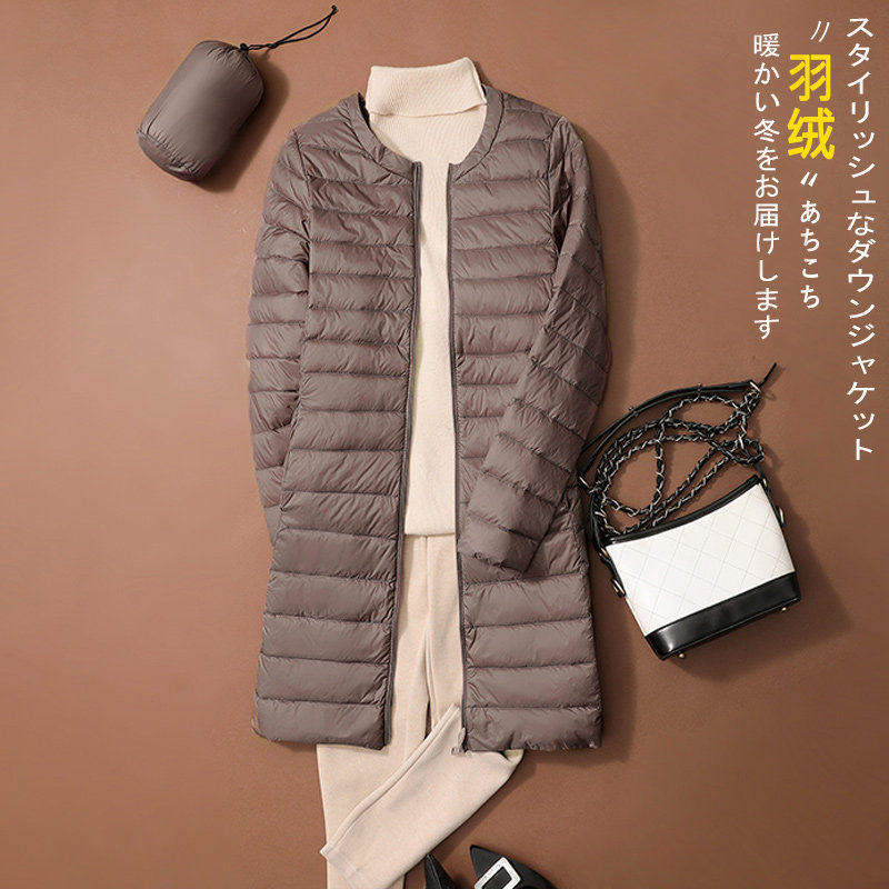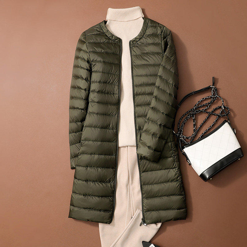 凯乐石薄荷2025年秋冬轻薄羽绒服女中长款圆领长袖大码薄款轻便羽