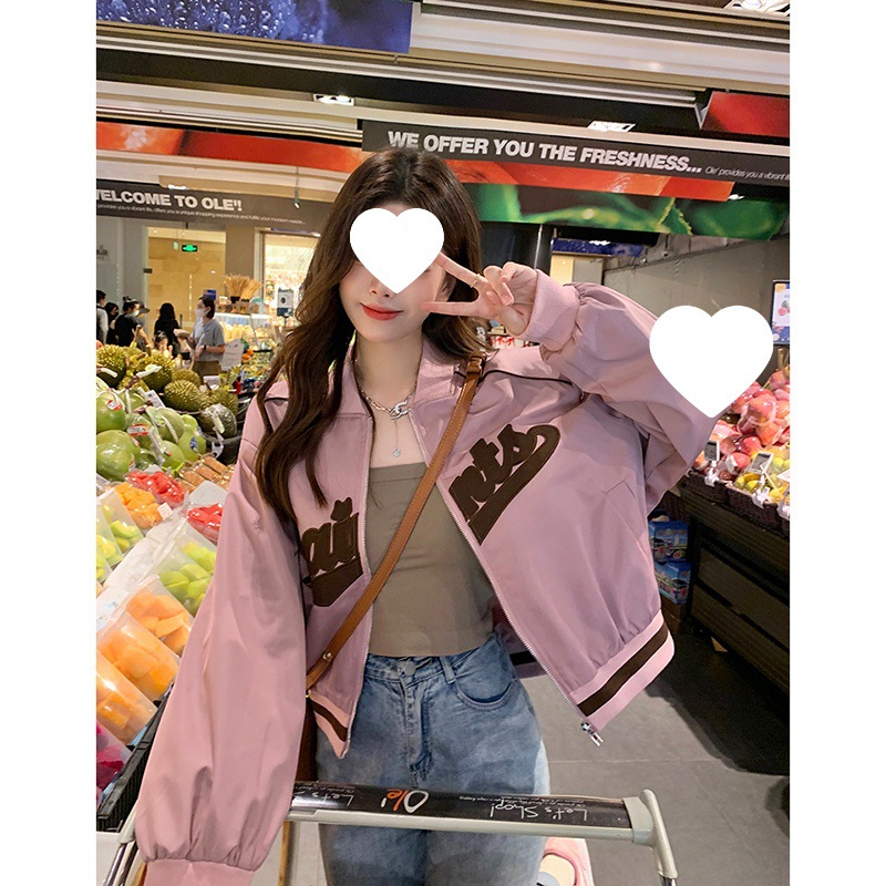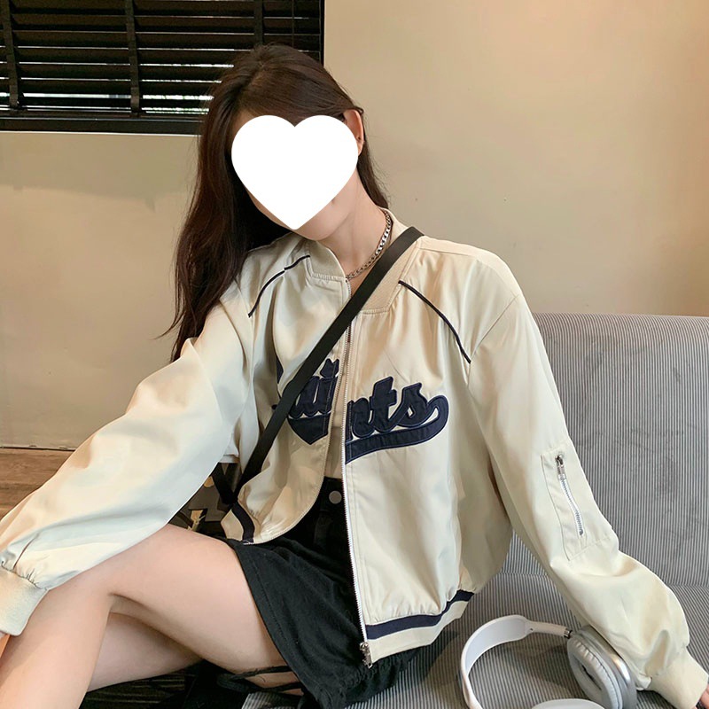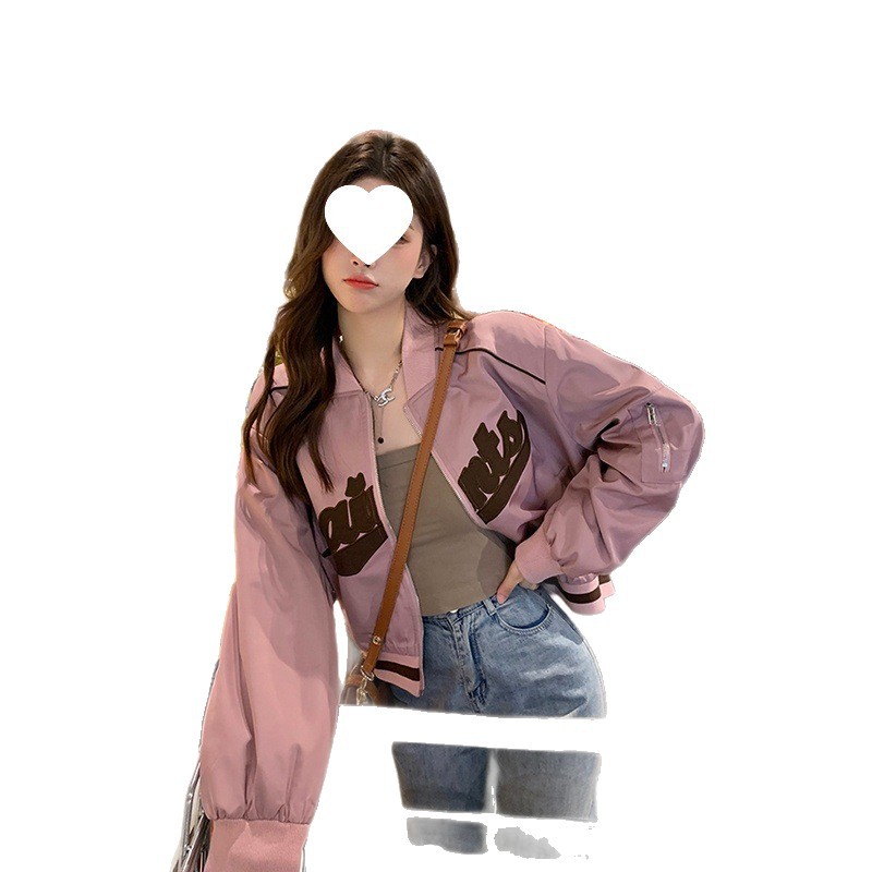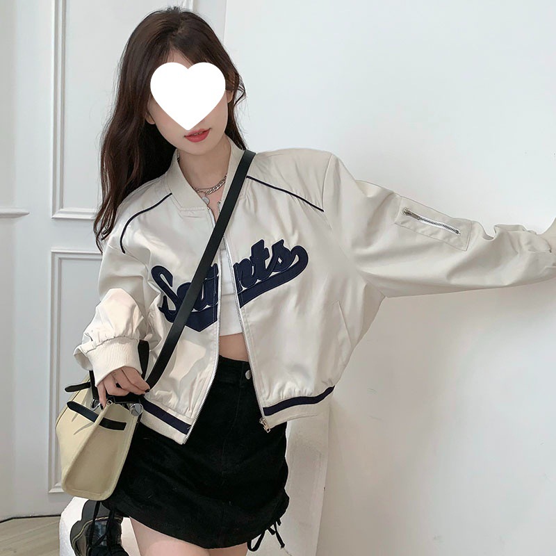 秋冬2025新款时尚休闲字母刺绣拼接棒球服宽松立领夹克外套女装