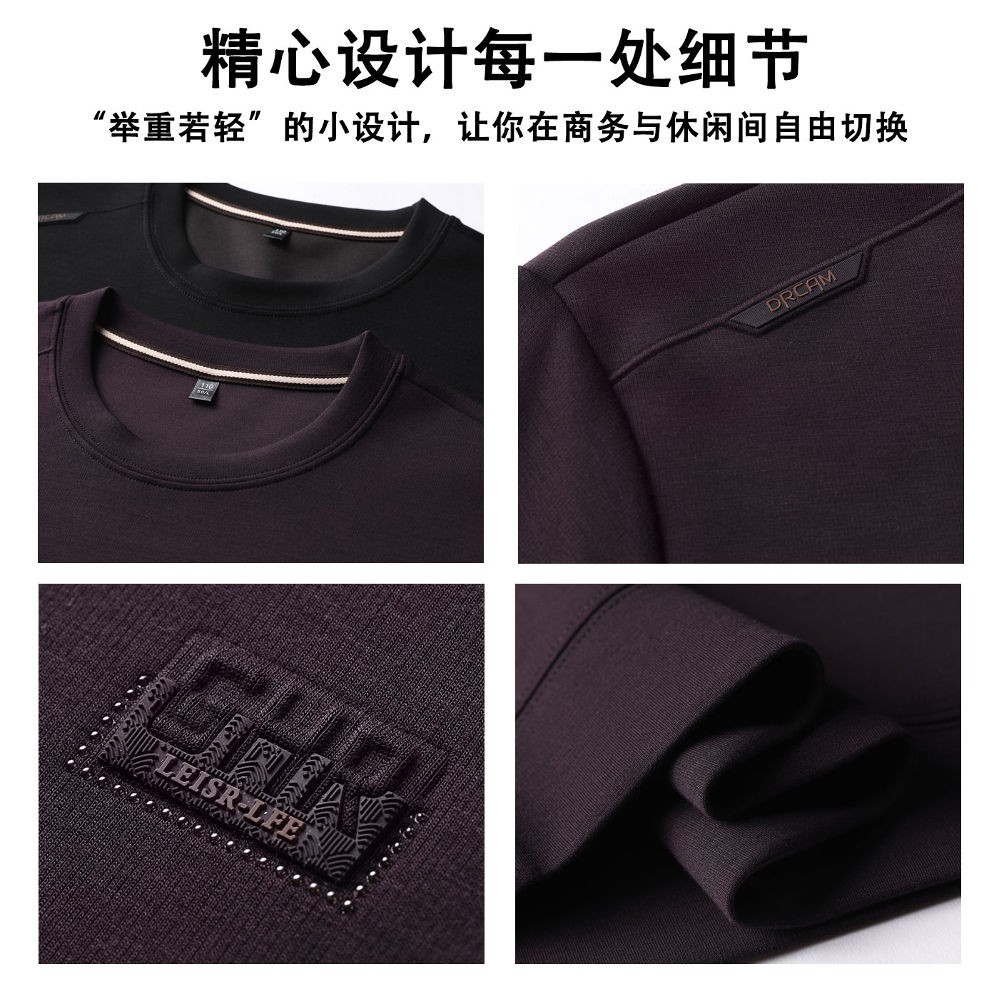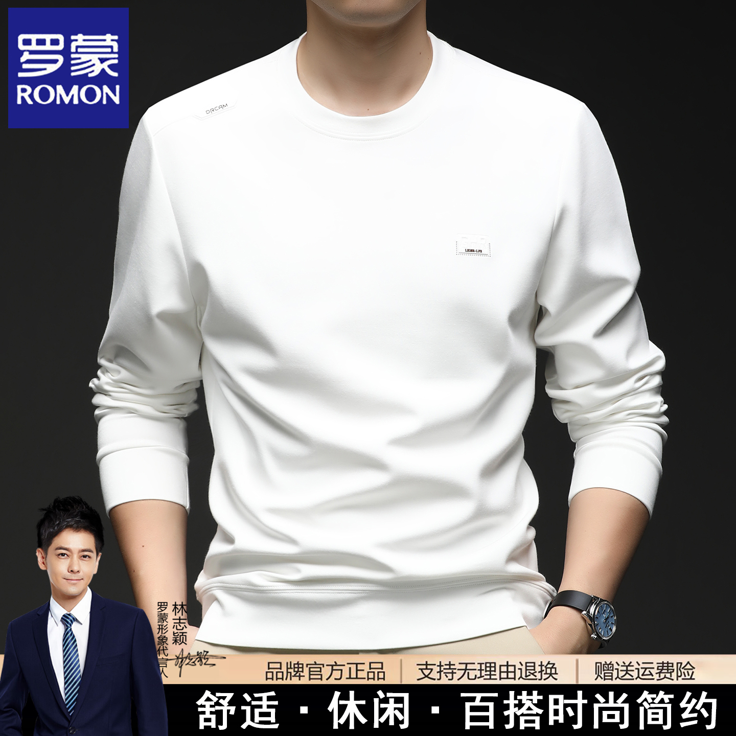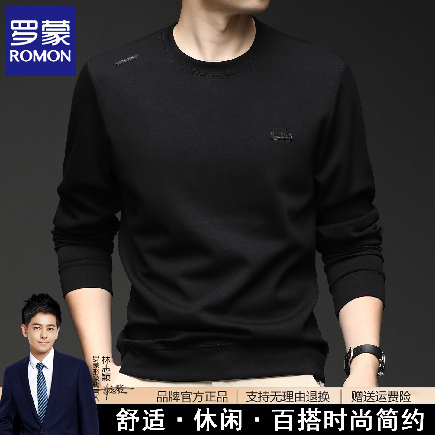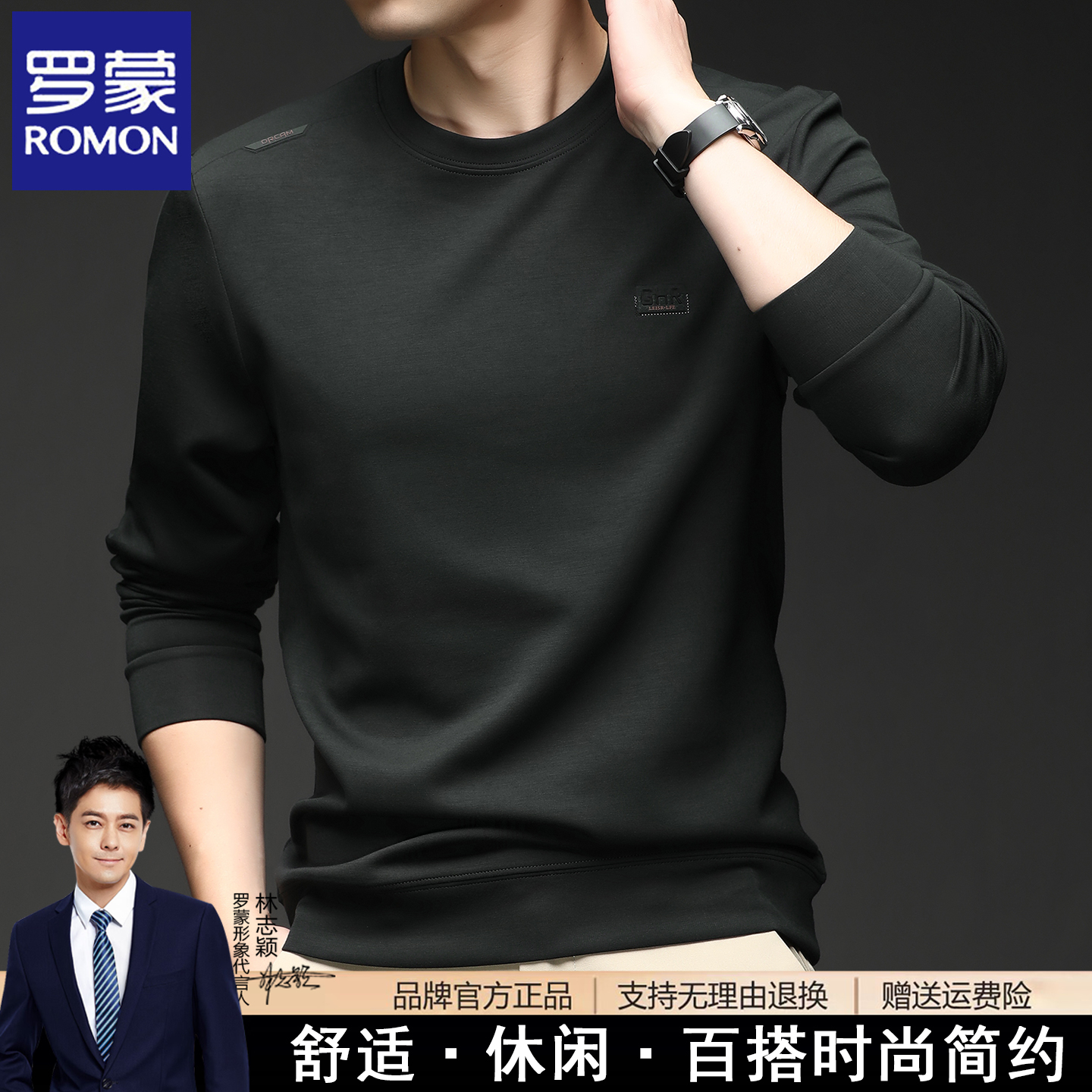 罗蒙春秋季新款长袖t恤男士时尚休闲免烫男装圆领卫衣打底体恤衫