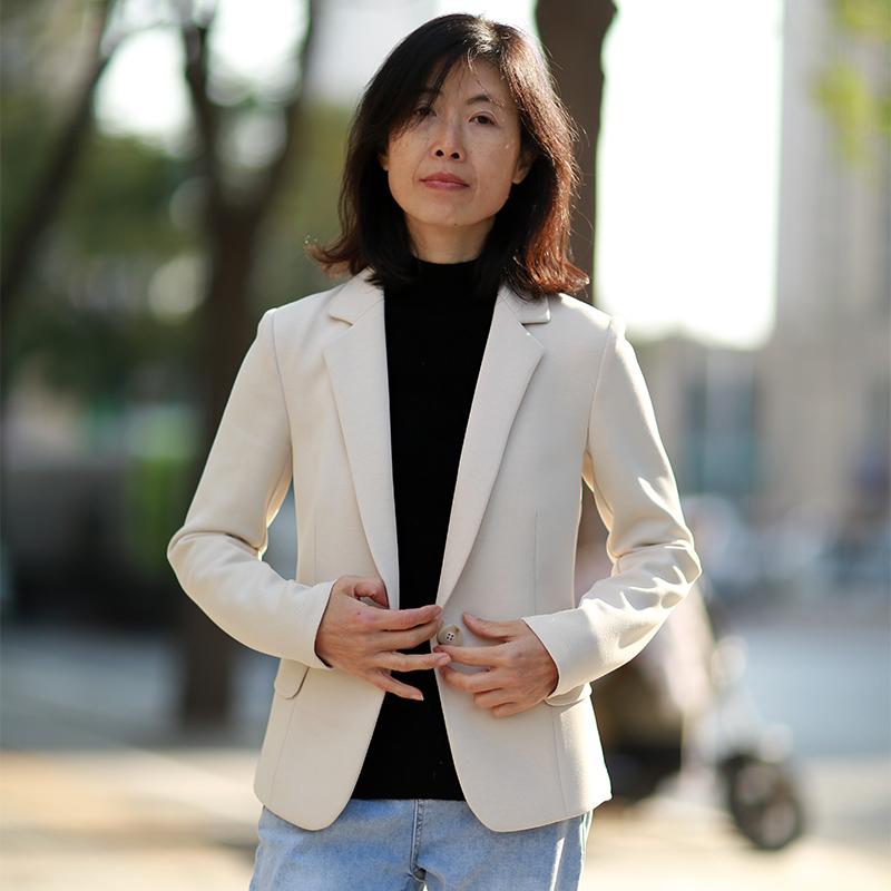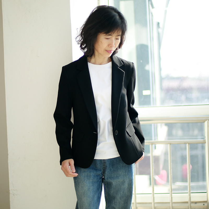 小西装外套女短款经典职业正装单层垂感针织通勤修身收腰弹力西服