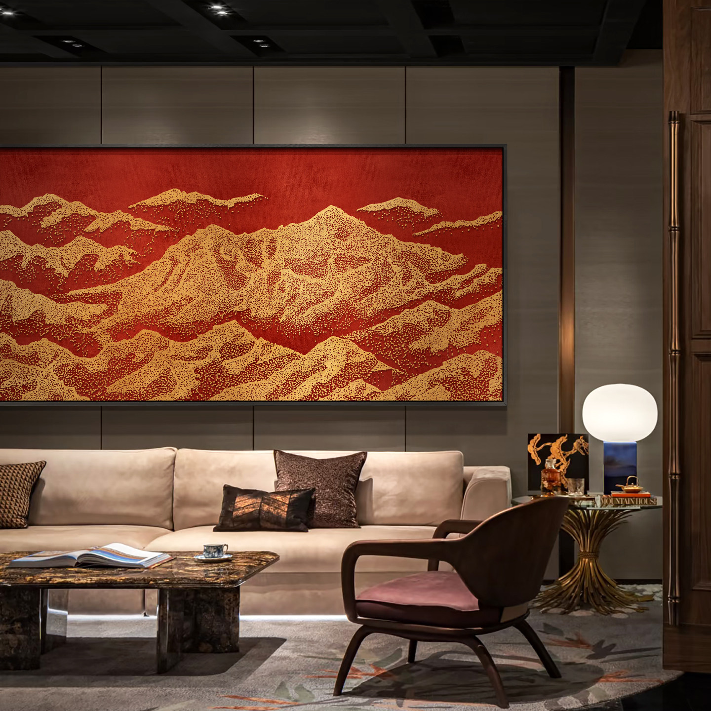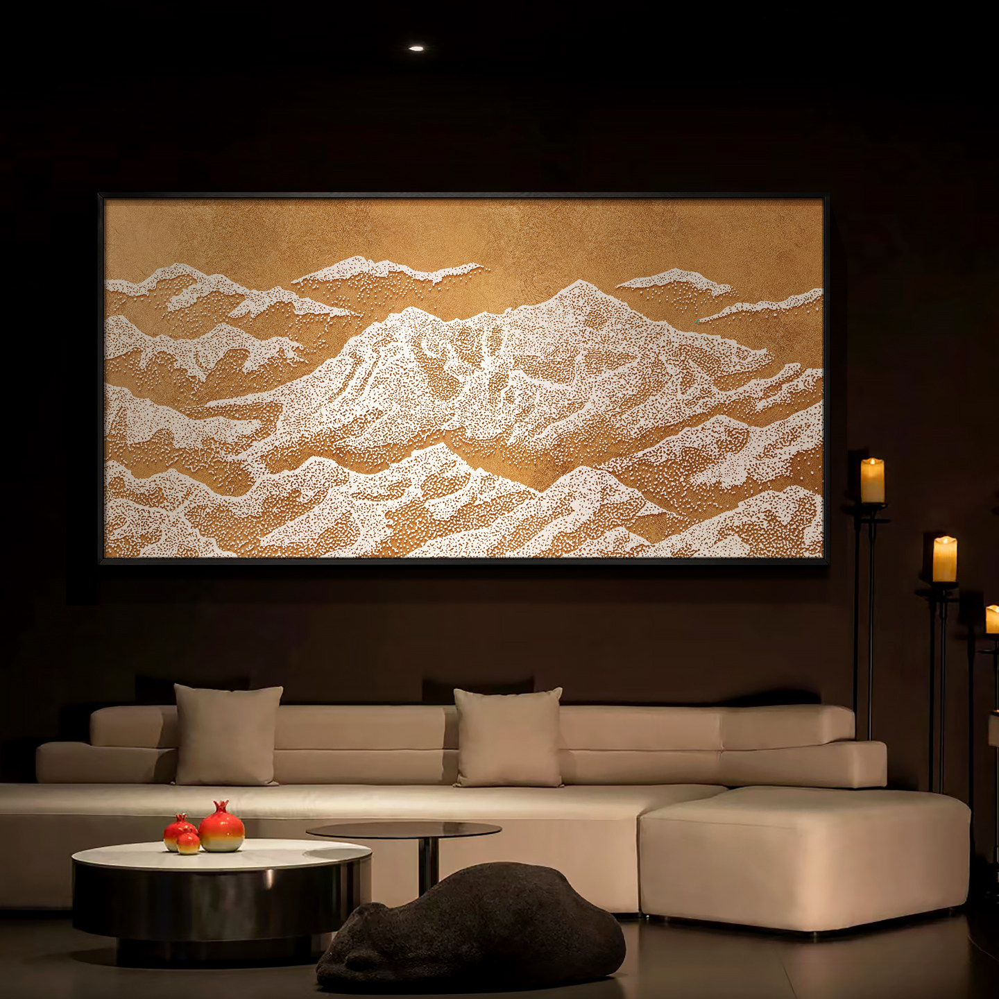 咖啡餐厅千峰肌理浮雕艺术挂画