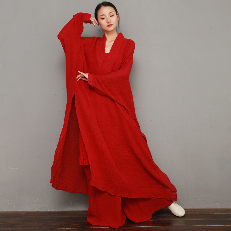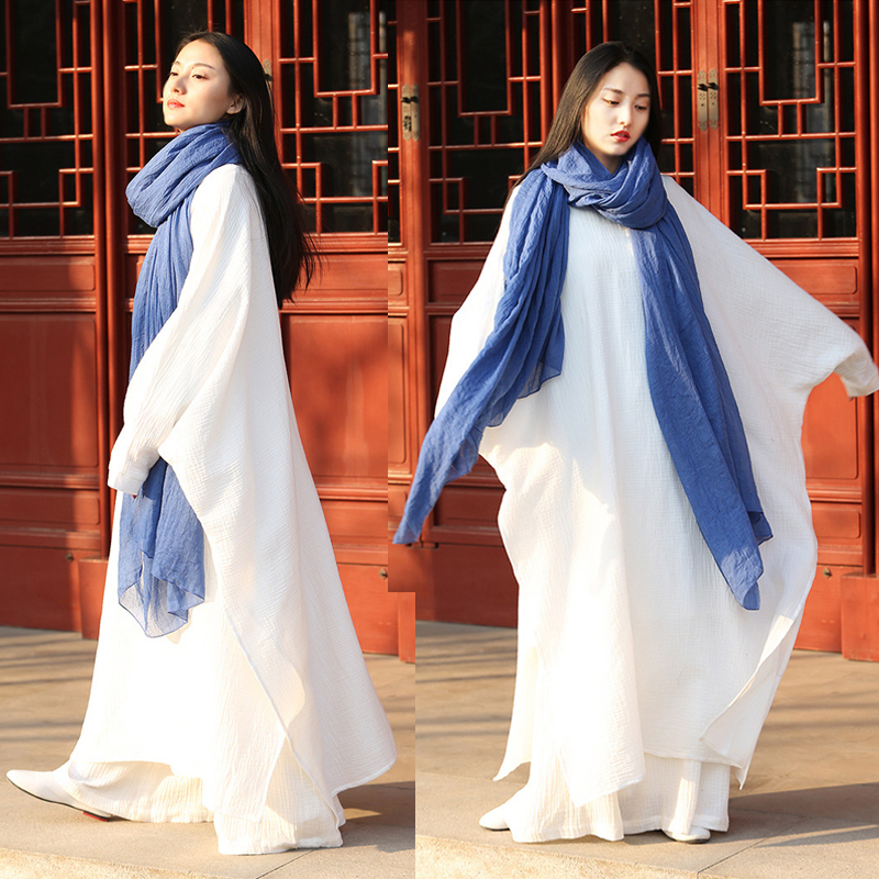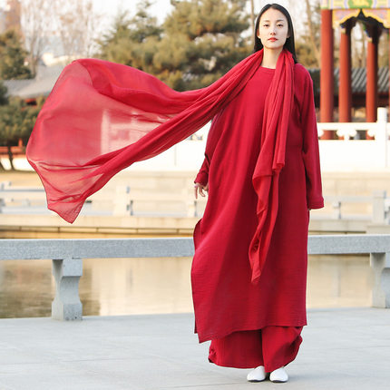 禅舞服装女白色套装中国风复古棉麻禅意宽松禅修服亚麻袍子连衣裙