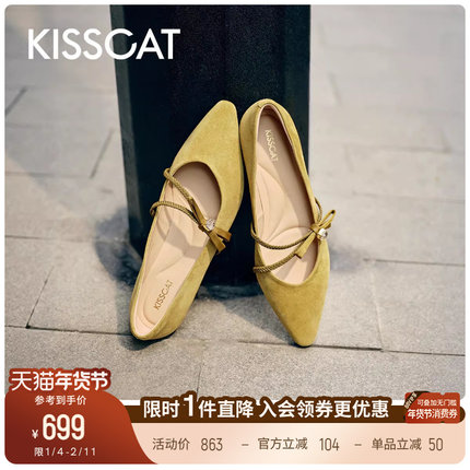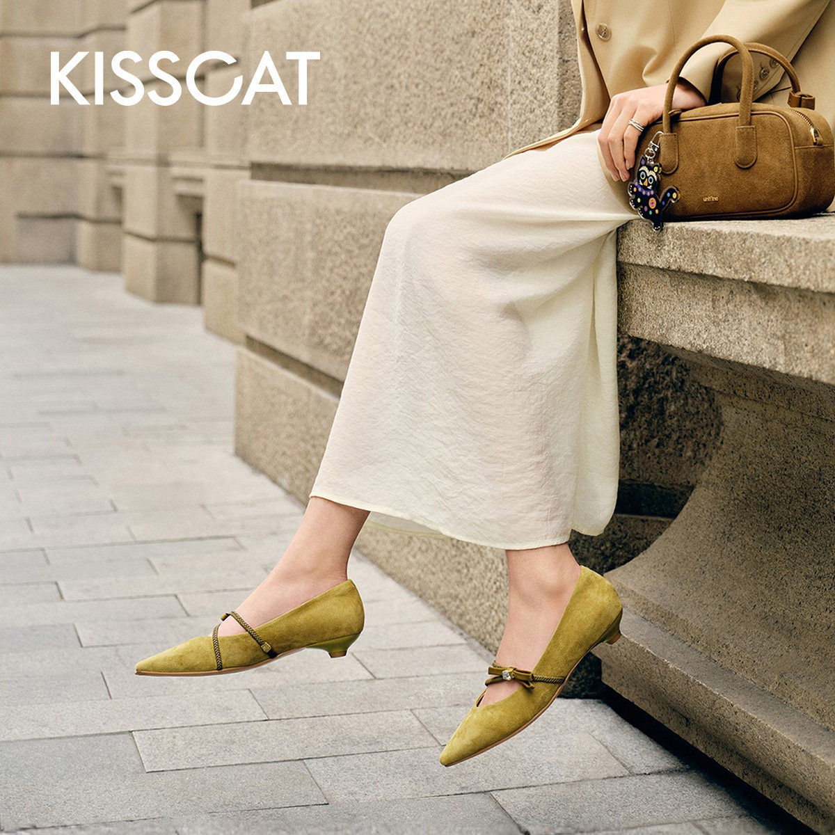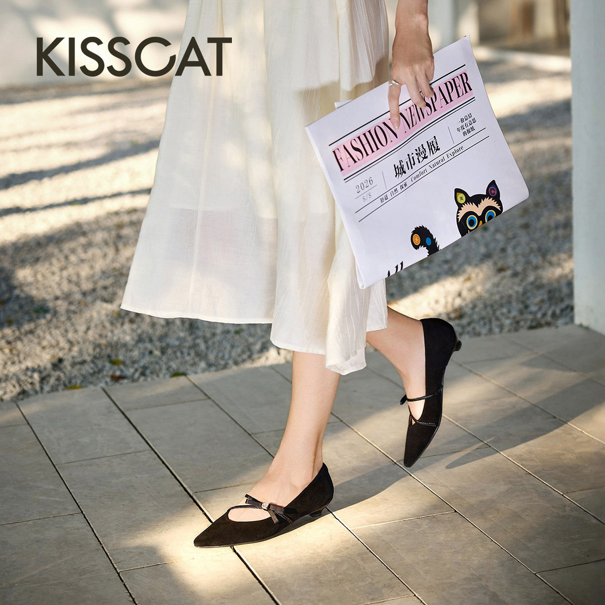 KISSCAT接吻猫[自由诗]复古玛丽珍26春新不累脚低跟鞋法式单鞋女