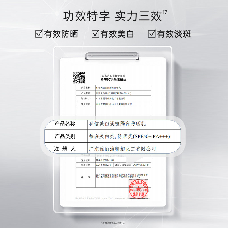 私信SPF50+清爽美白防晒乳