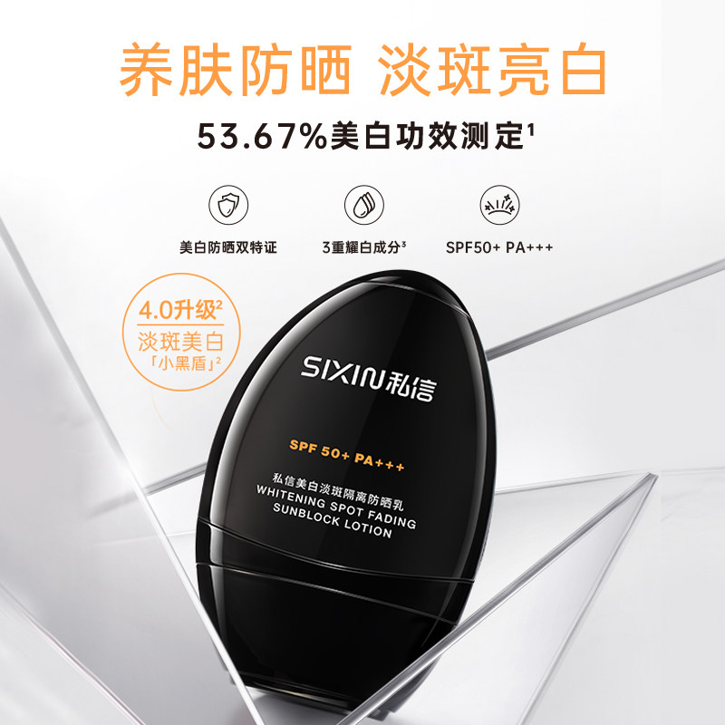 SIXIN 私信美白防晒乳SPF50+隔离防晒隔离紫外线清爽防晒霜小黑盾