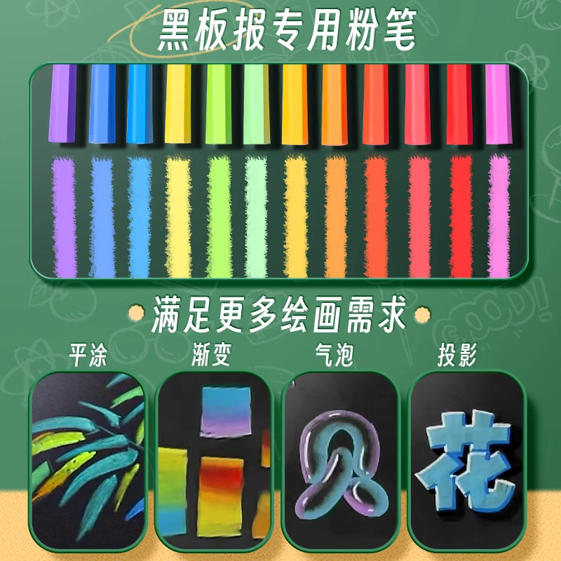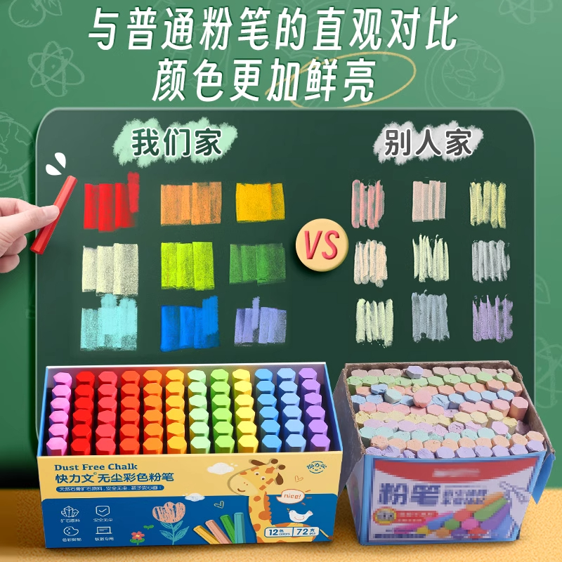 全新彩色粉笔无尘写字黑板报教师专用多色粉笔教学儿童不脏手鲜艳显色无粉尘魔法粉笔48色红白黑96支绘画