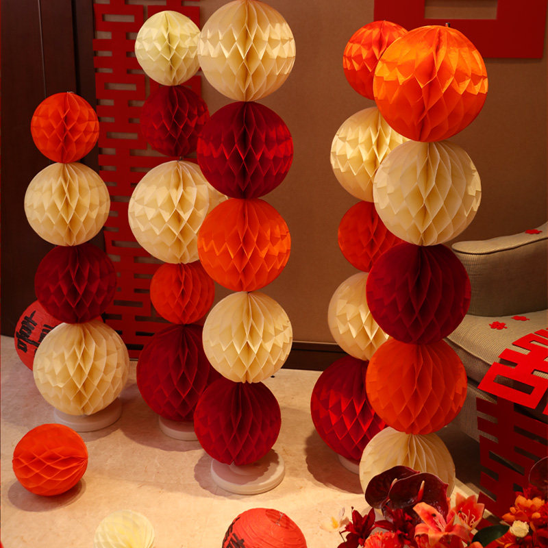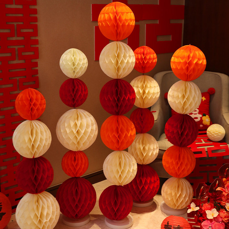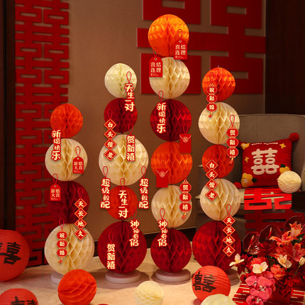 蜂窝球立柱灯笼结婚用品大全女方婚房布置套装订婚礼卧室酒店装饰