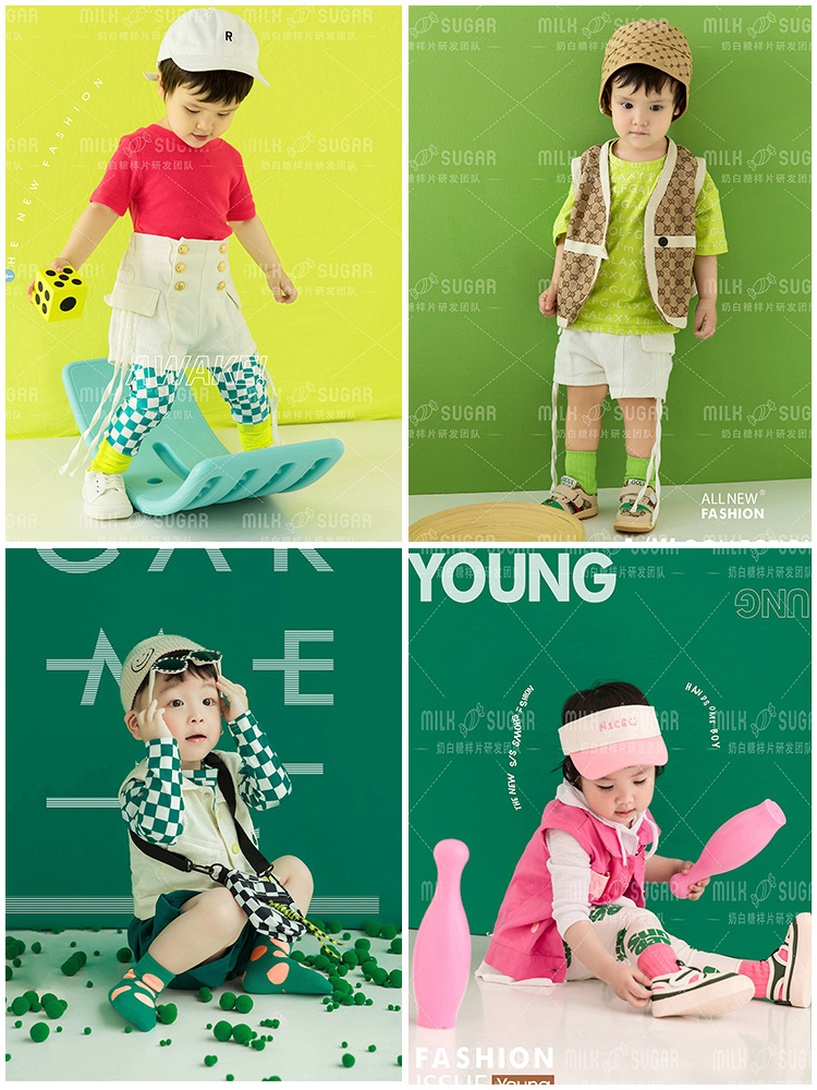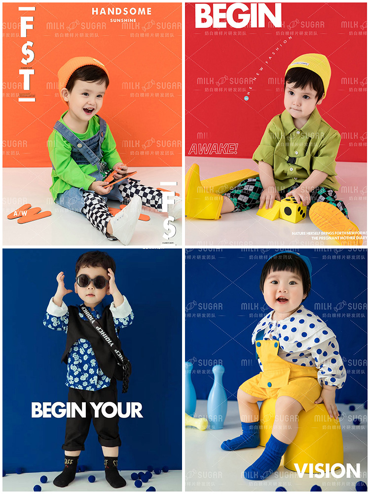 2岁3岁儿童亮色系套装影楼摄影主题服装小中大童周岁宝宝拍照衣服