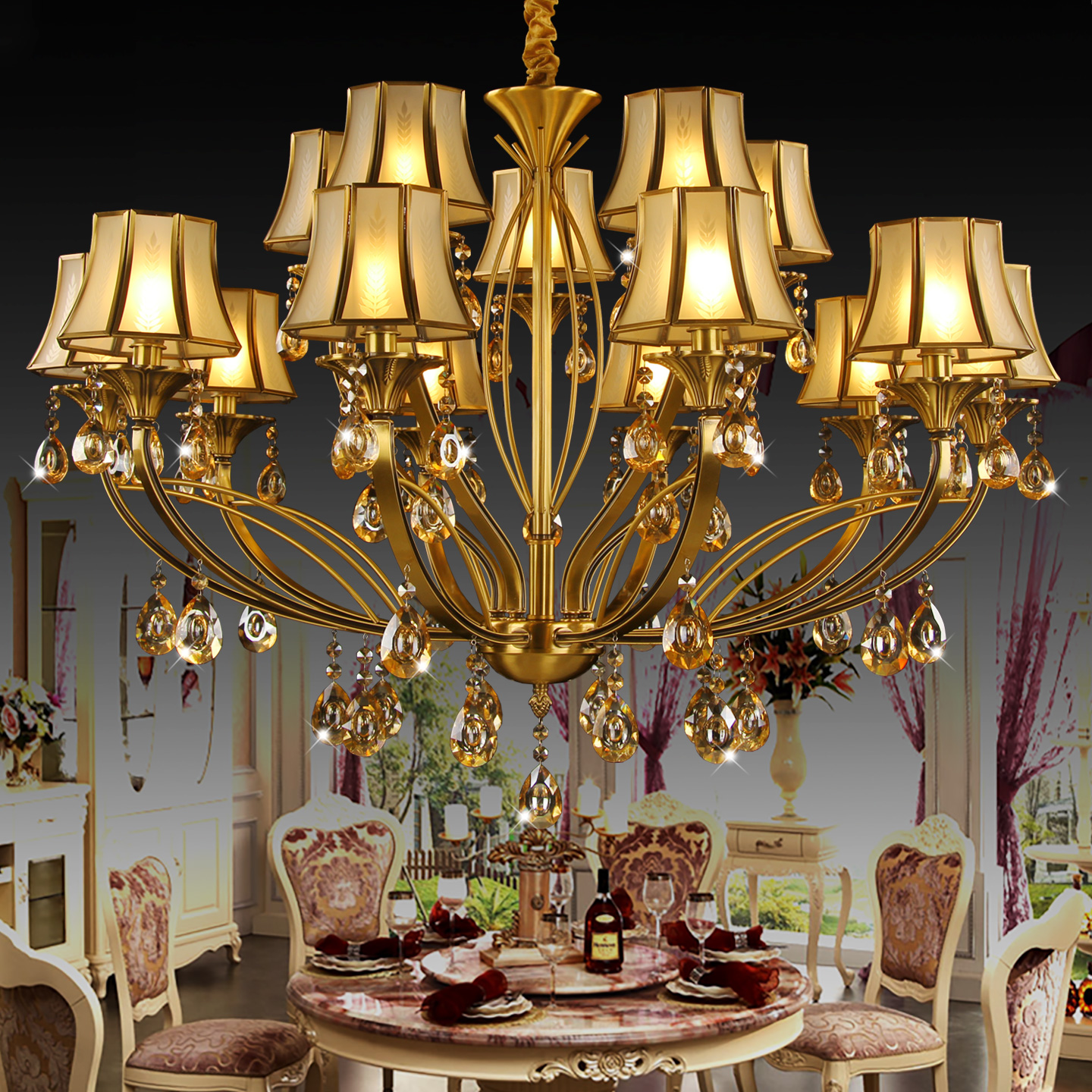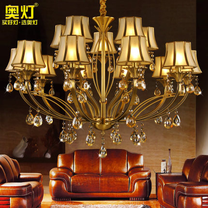 奥灯欧式别墅客厅复古水晶吊灯家用复式楼梯书房餐厅全铜灯饰9740