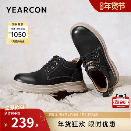 意尔康男鞋冬秋季男士户外休闲鞋复古皮鞋英伦风工装鞋男款登山鞋