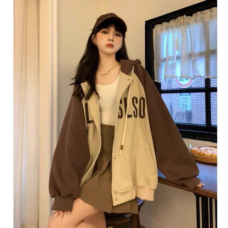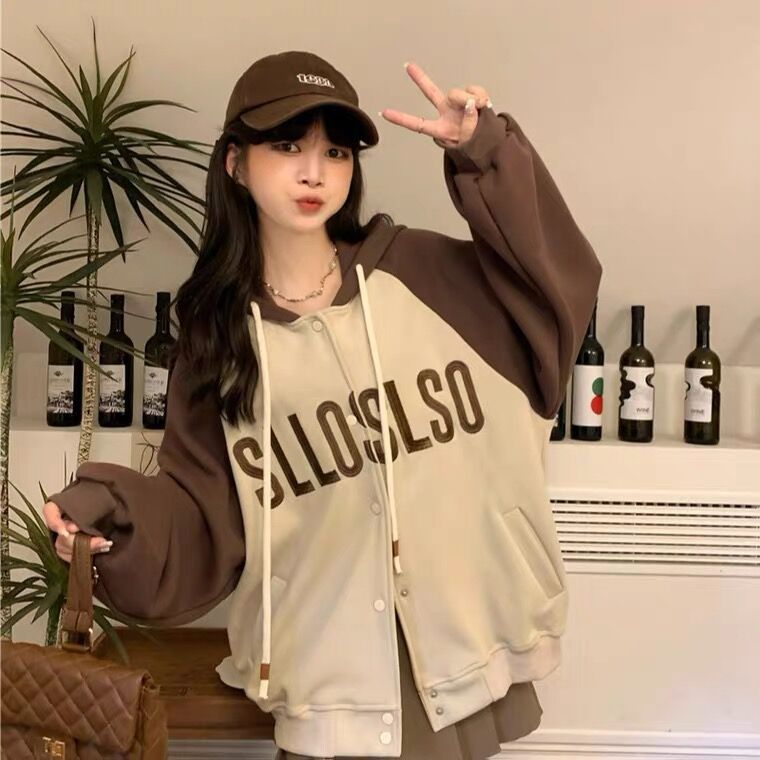 连帽卫衣女棒球服秋冬2025新款大码宽松高级时尚休闲加绒加厚外套