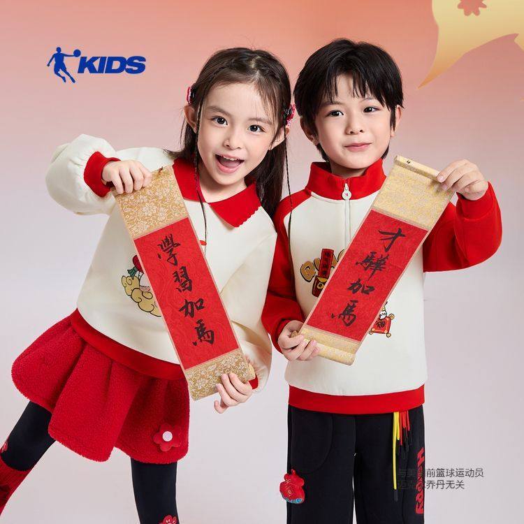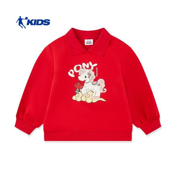 才骅加马乔丹儿童翻领可爱女童卫衣拜年服马年套头衫TDDWDD261097