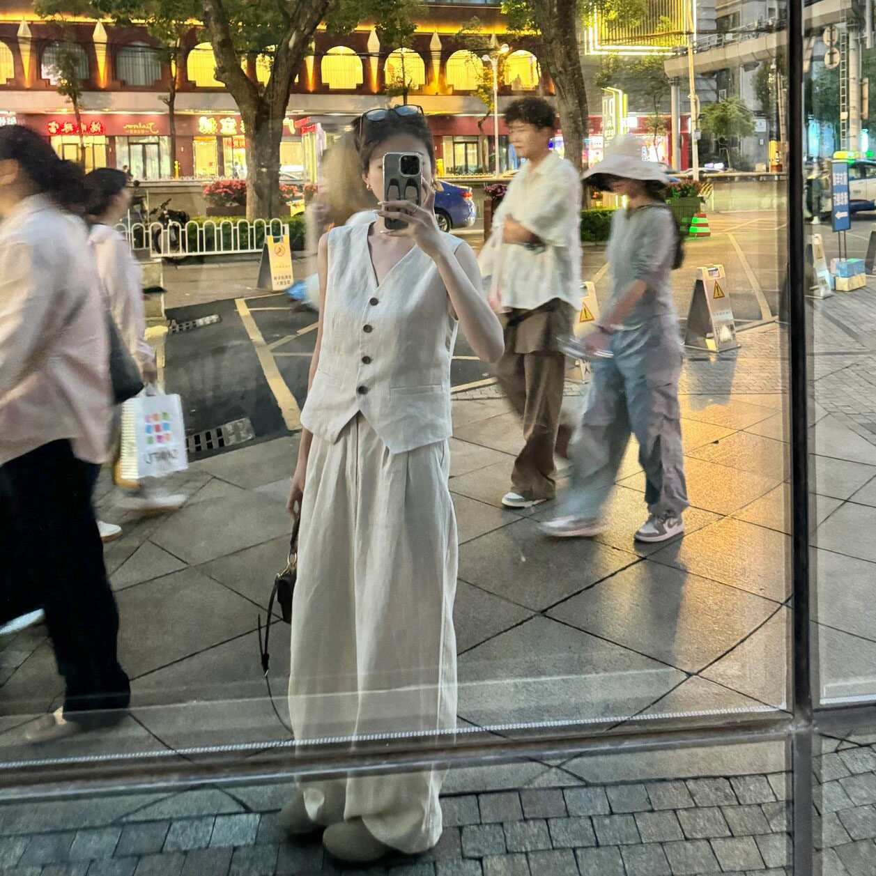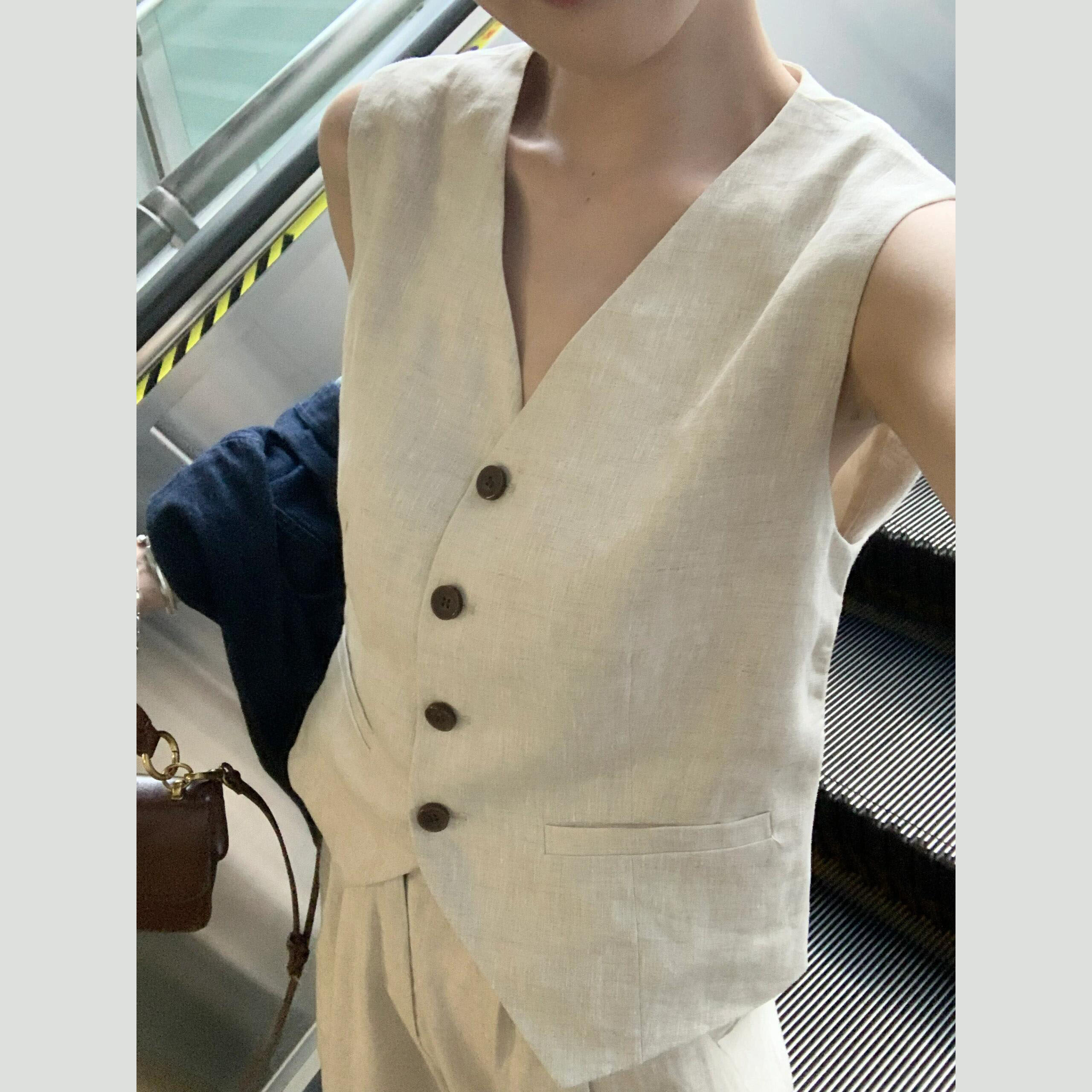 韩系复古松弛感老钱风穿搭套装夏季V领棉麻马甲休闲阔腿裤两件套