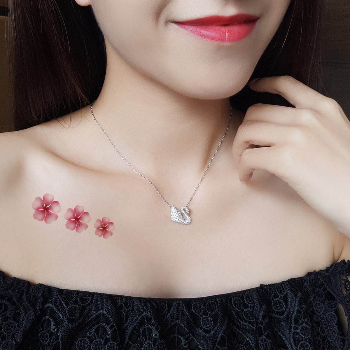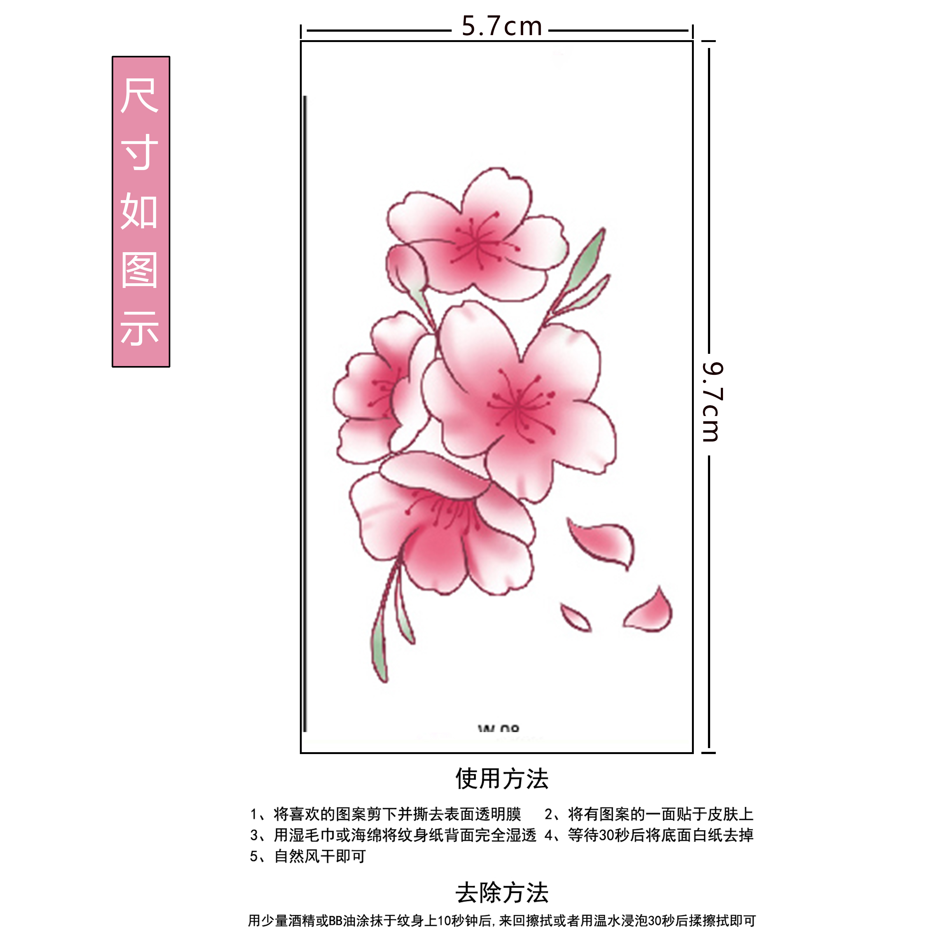 原创樱花纹身贴防水女古风仙女性感锁骨粉色少女花朵持久仿真贴纸