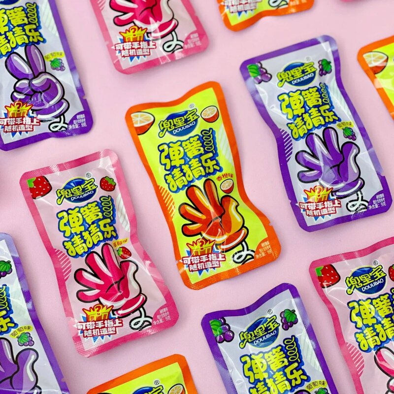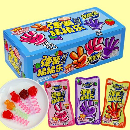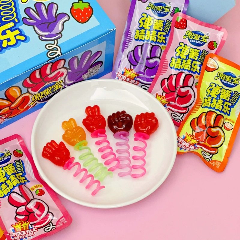 弹簧石头剪刀布造型硬糖跳糖儿童手指玩县糖果童年小零食盒装批发