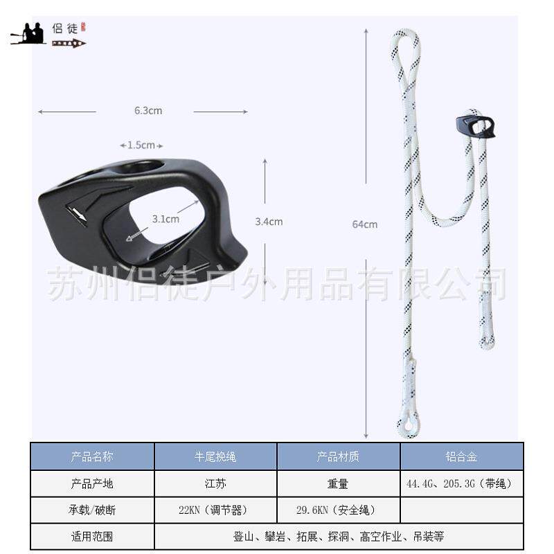 可调节牛尾绳器安全绳高空作业挂绳配件防坠落攀岩速降不对称绳索