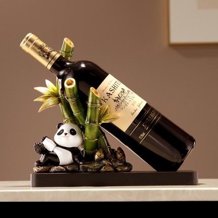 新中式卡通熊猫竹子红酒架子酒柜装饰品摆件客厅电视柜家居工艺品