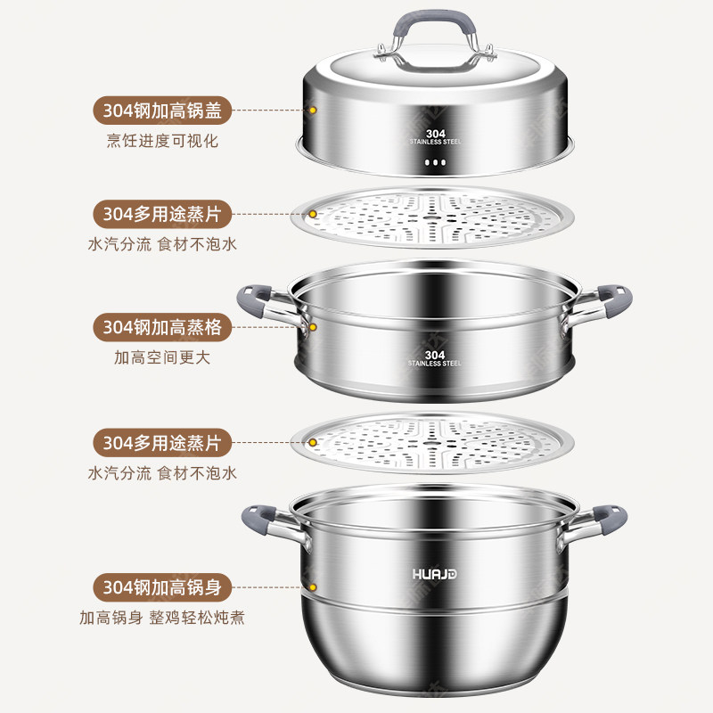 华际达全304不锈钢蒸锅家用2026新款加厚蒸笼电磁炉正品旗舰店