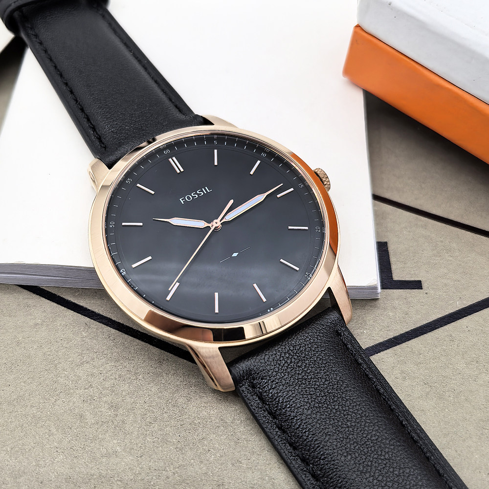 FOSSIL手表真皮表带简约潮流玫瑰金商务休闲石英表防水男表