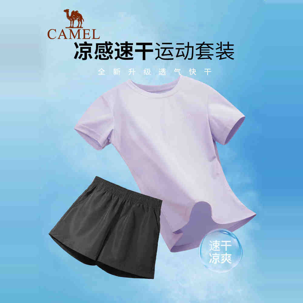 骆驼运动套装男女款短裤短袖两件套速干T恤健身套装跑步瑜伽服