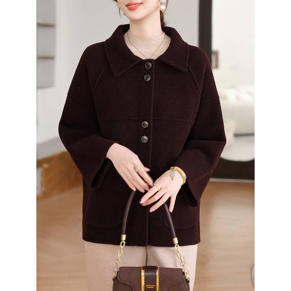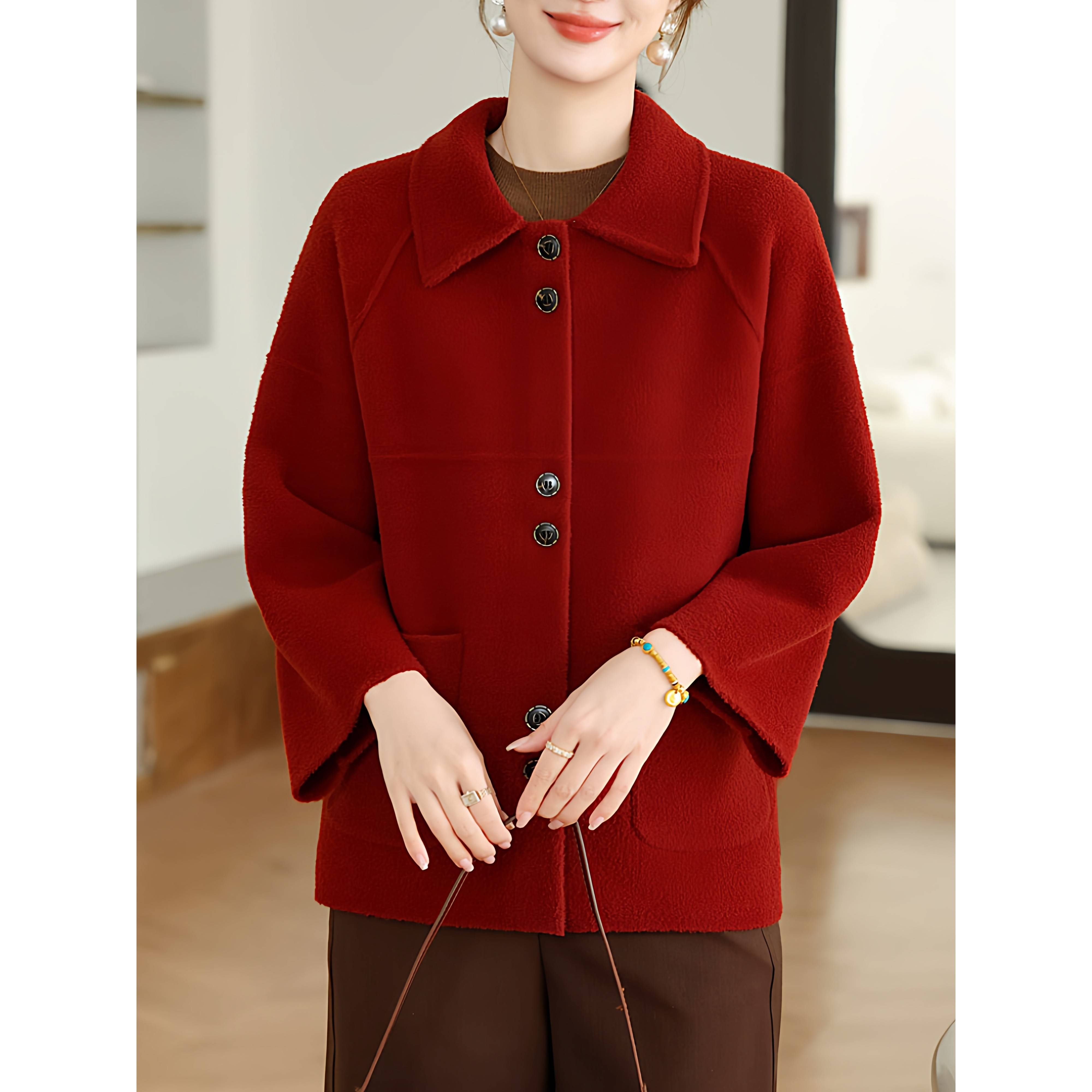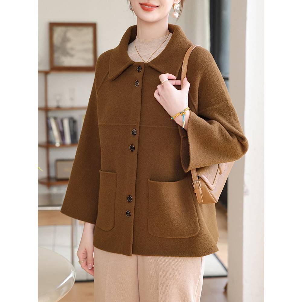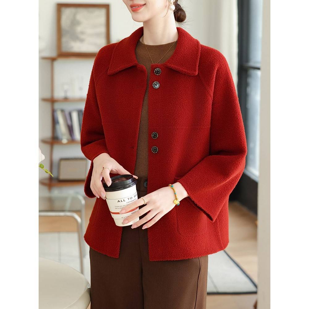 中年妈妈秋装外套2025新款中老年女装秋冬洋气翻领双面呢上衣大码