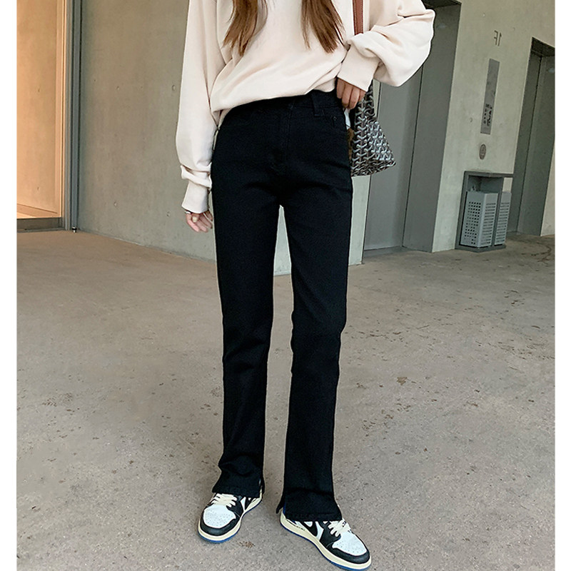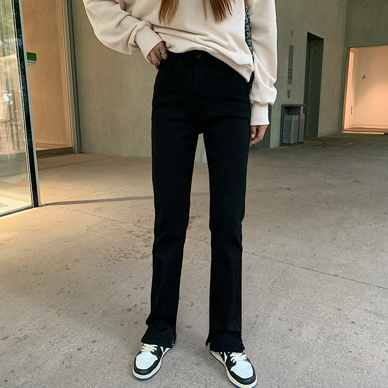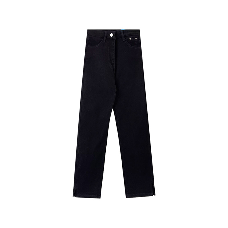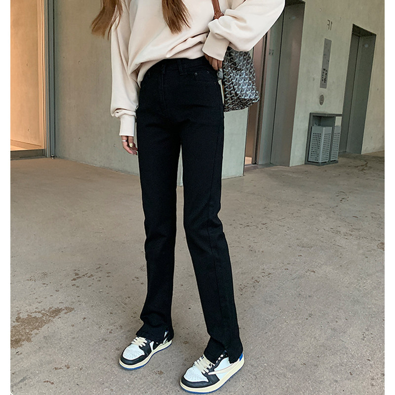 黑色开叉牛仔裤女秋冬新款胖妹妹mm宽松显瘦直筒梨型身材阔腿长裤