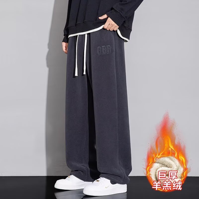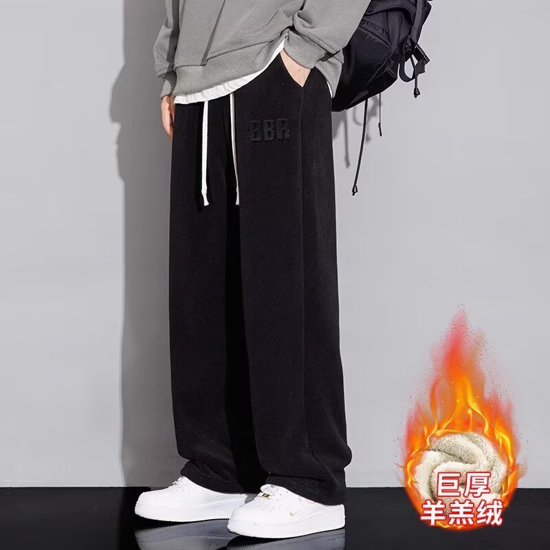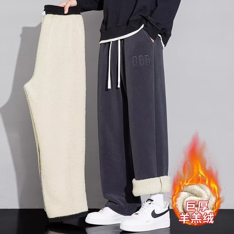 2025新款冬季羊羔绒休闲裤子男加绒加厚保暖卫裤男生直筒运动长裤