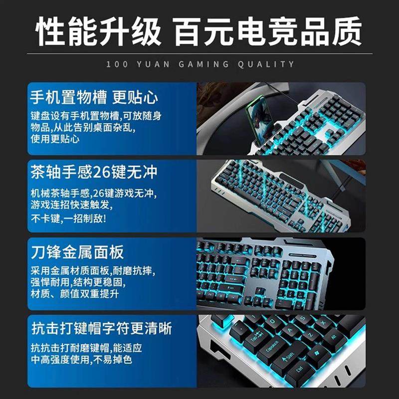 金属真机械手感键盘鼠标有线键盘电竞游戏专用键鼠无线电脑台式男