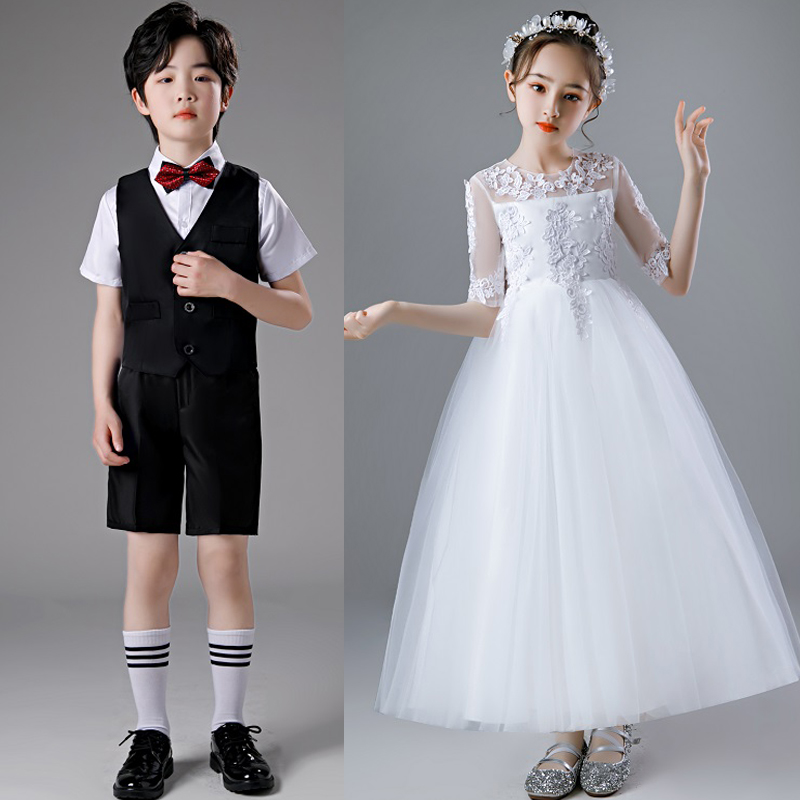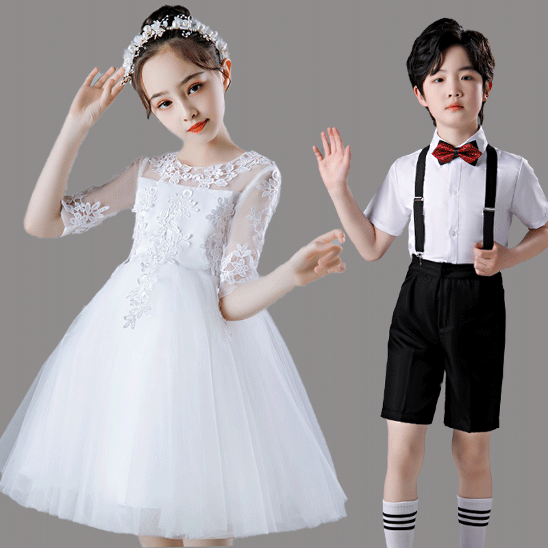 儿童白色礼服生日公主裙女童走秀蓬蓬裙大童钢琴演奏花童婚纱长裙
