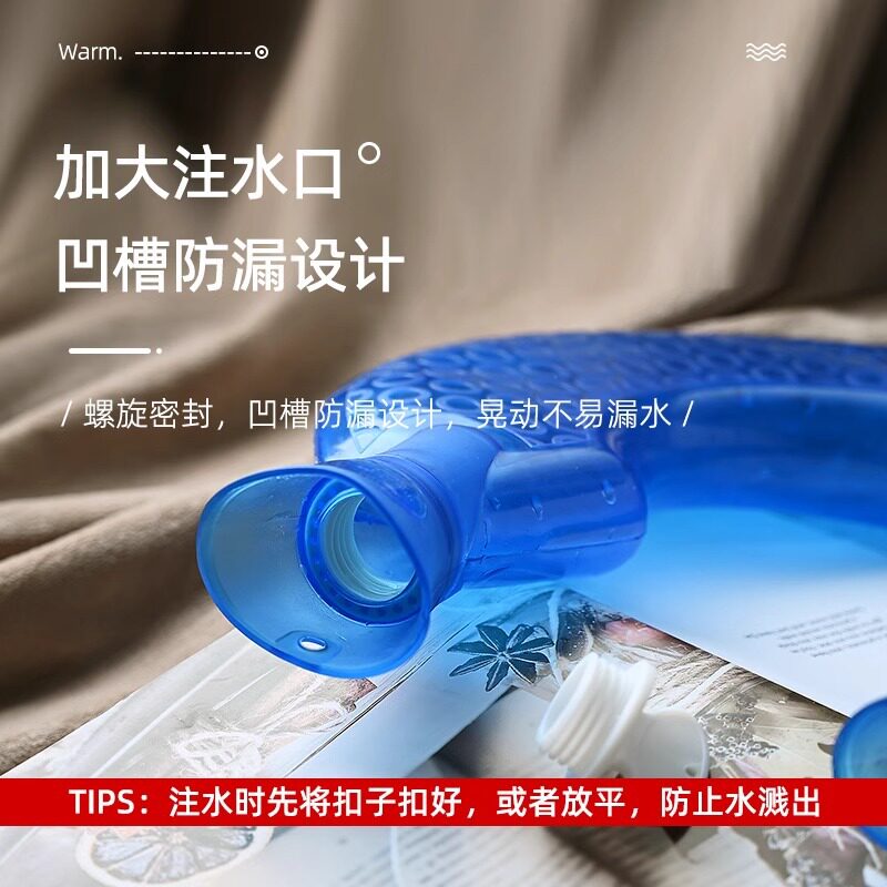 U型热水袋注水加厚防爆颈肩热敷水袋颈部暖水袋毛绒保暖颈椎保暖