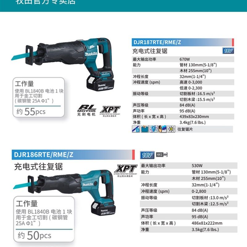 牧田18V马刀锯DJR187充电无刷往复锯DJR186木材金属电缆快速切割