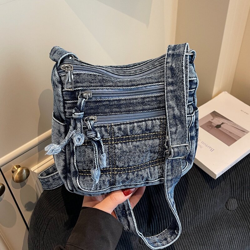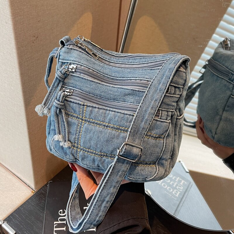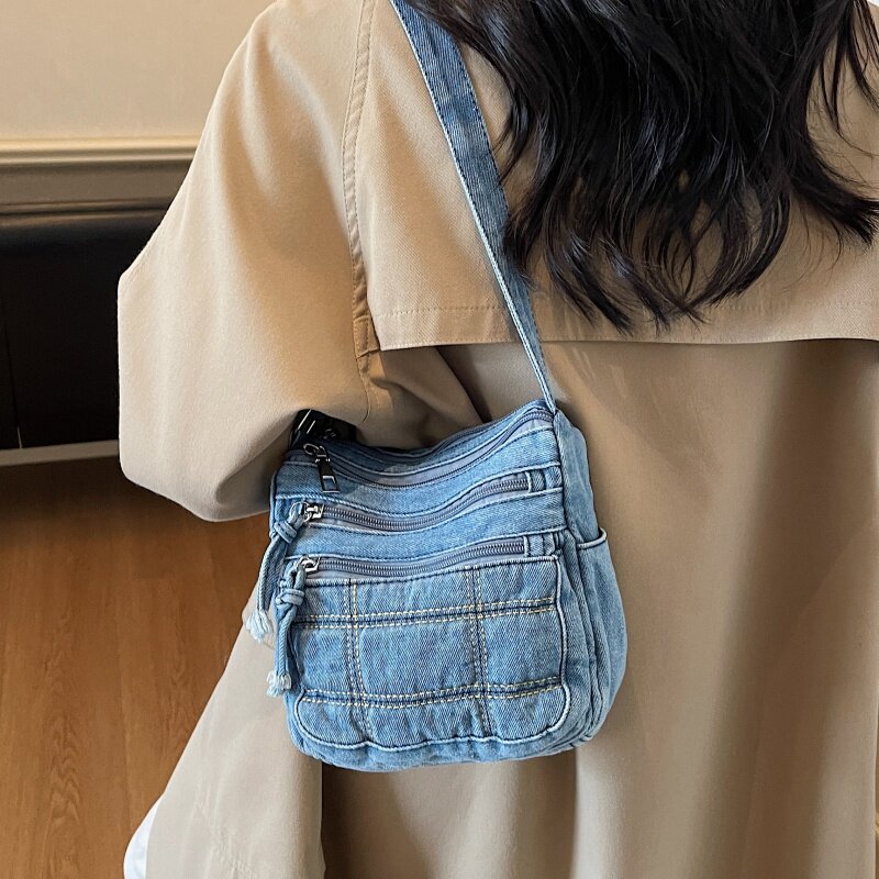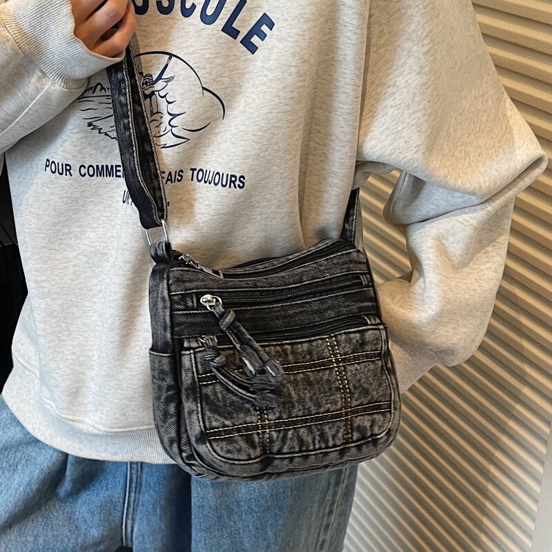 牛仔布小包包女2025新款大容量多层单肩通勤包小众百搭休闲斜挎包