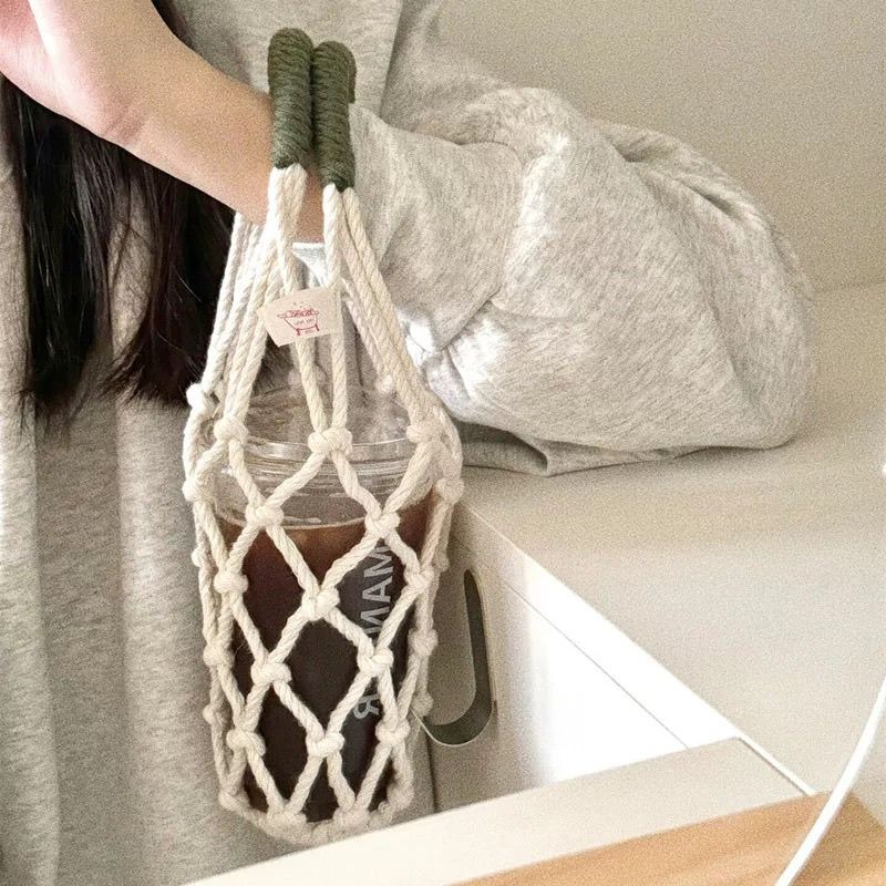 原创咖啡杯网兜杯套便携式水杯奶茶杯提兜通用手工编织防烫杯袋女