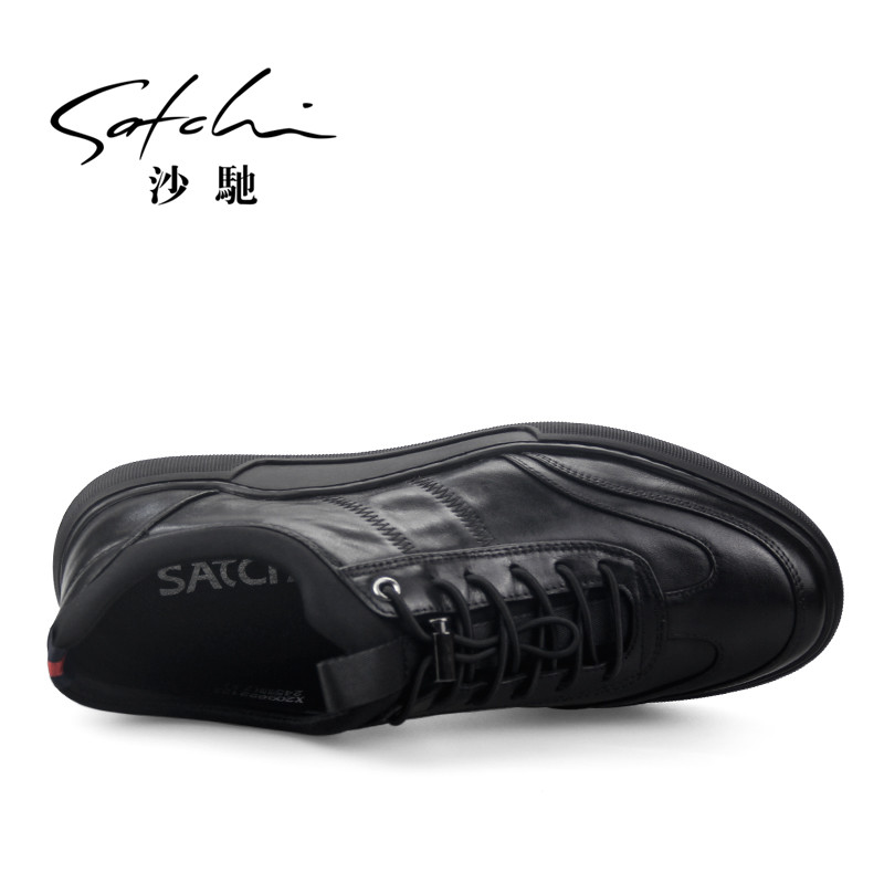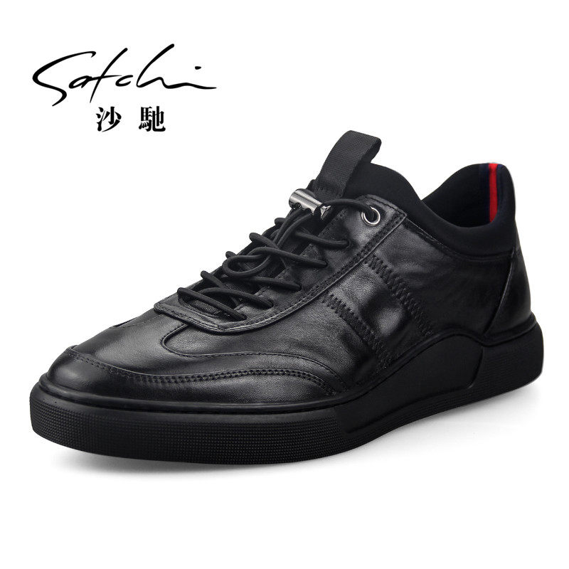 沙驰真皮男鞋英伦商务男士休闲皮鞋系带板鞋潮鞋子软皮软底驾车鞋