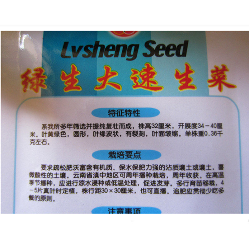 云南蔬菜种子包邮绿生大速生菜10克菜籽昆明品种四季秋冬室内播种