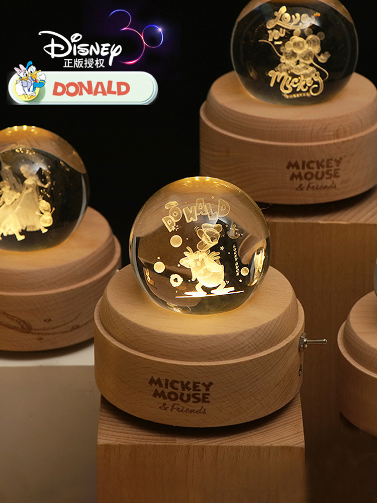 迪士尼唐老鸭黛丝水晶球八音盒发光天空之城音乐盒生日礼物送女生