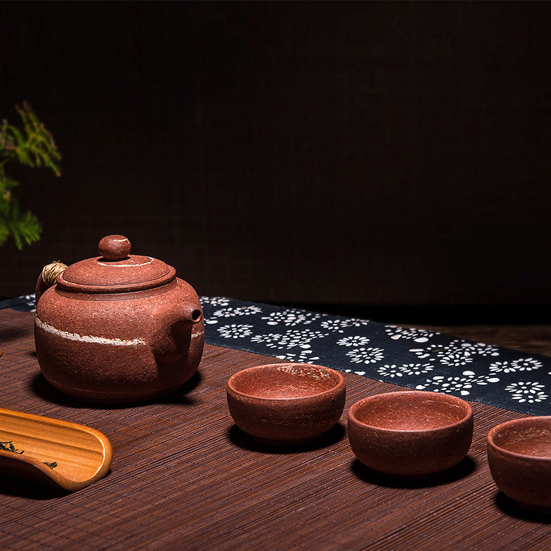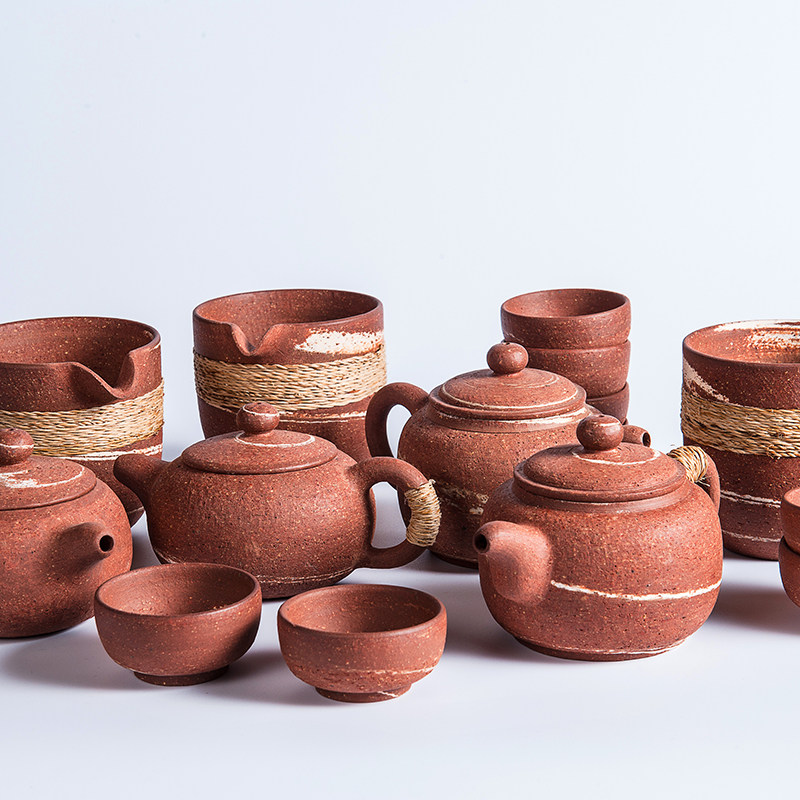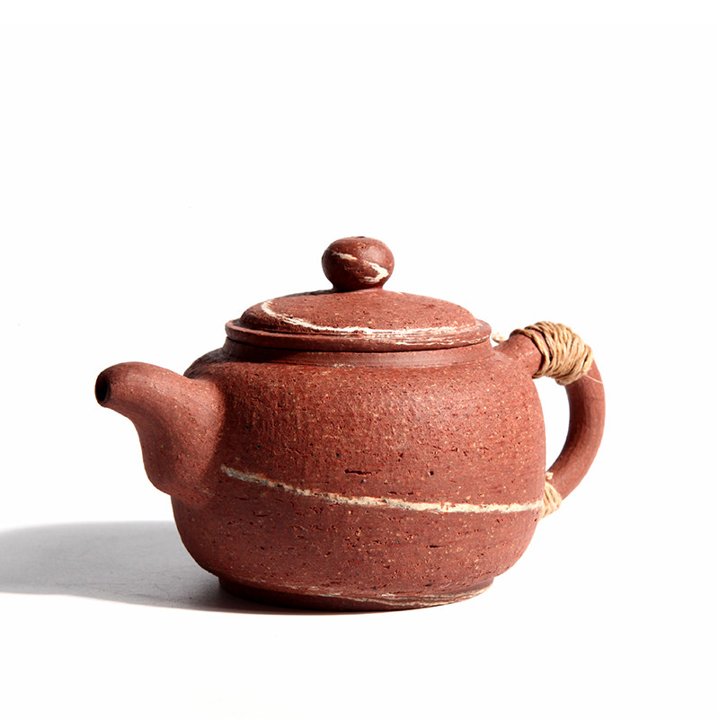 荣昌安陶粗陶绞纹仿古壶纯全手工养生茶壶功夫茶具扁圆壶非紫砂壶