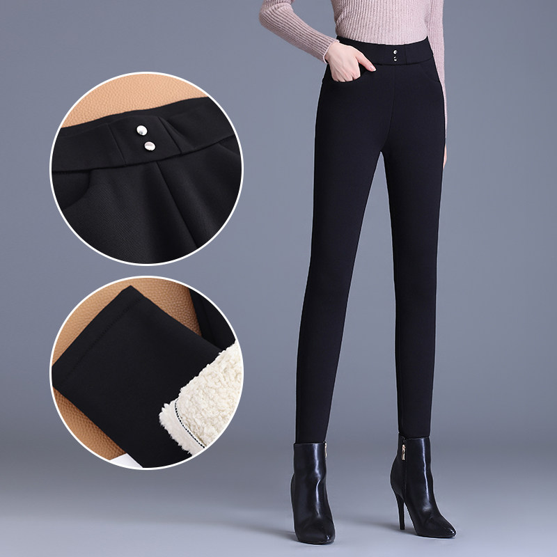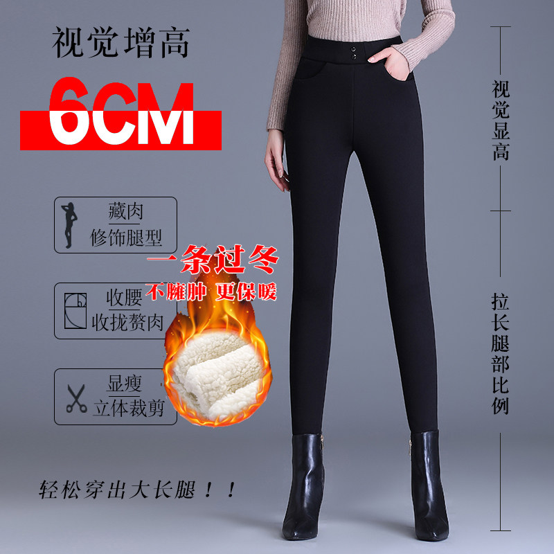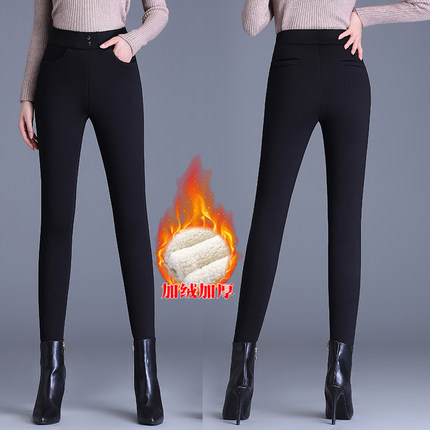 梦舒雅弹力外穿加绒小脚铅笔裤女