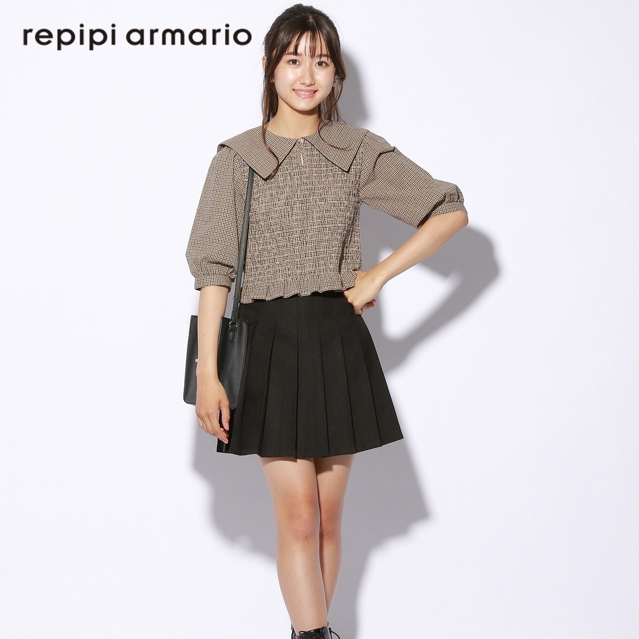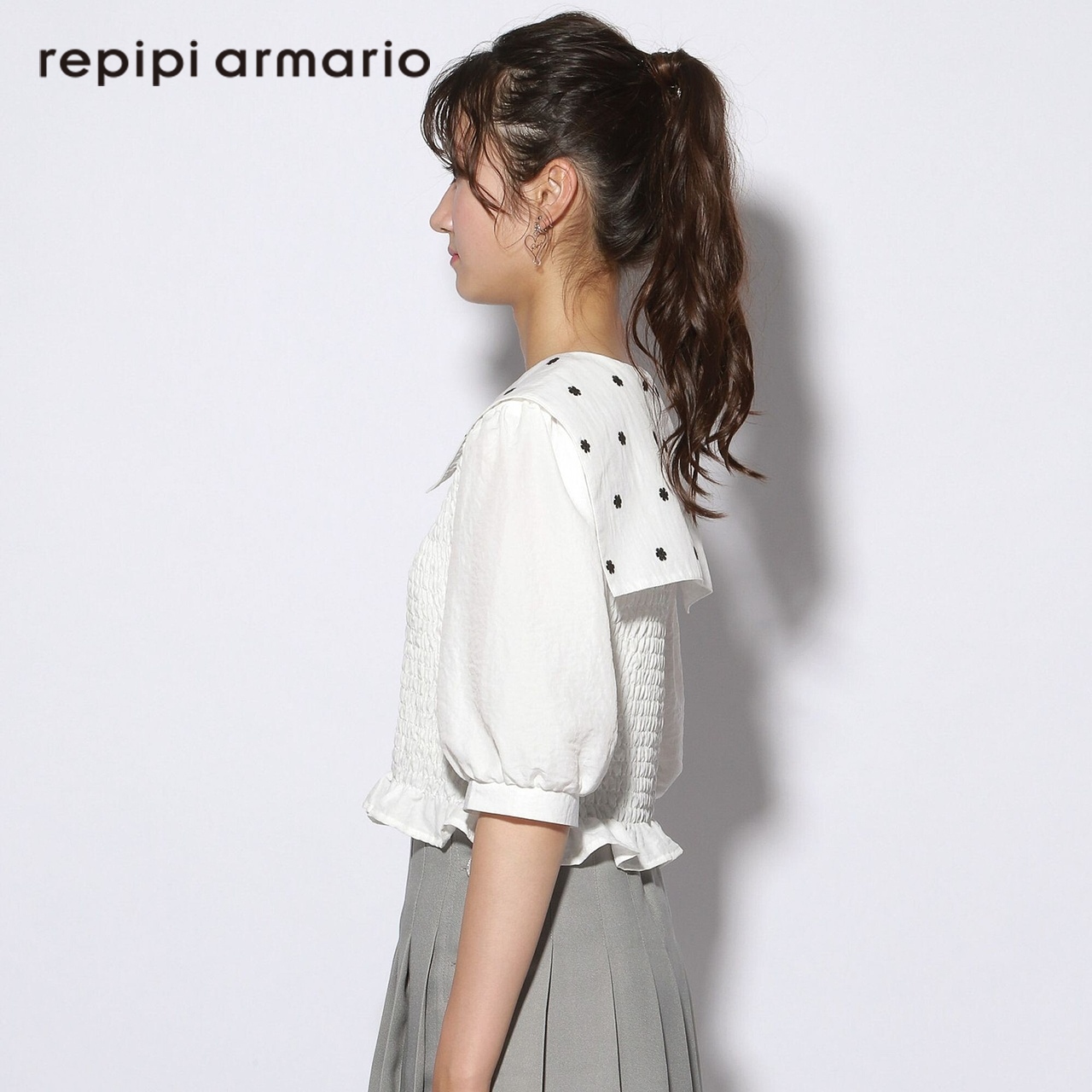 repipi armario衬衫女2023年夏季娃娃领白色褶裥短袖349129